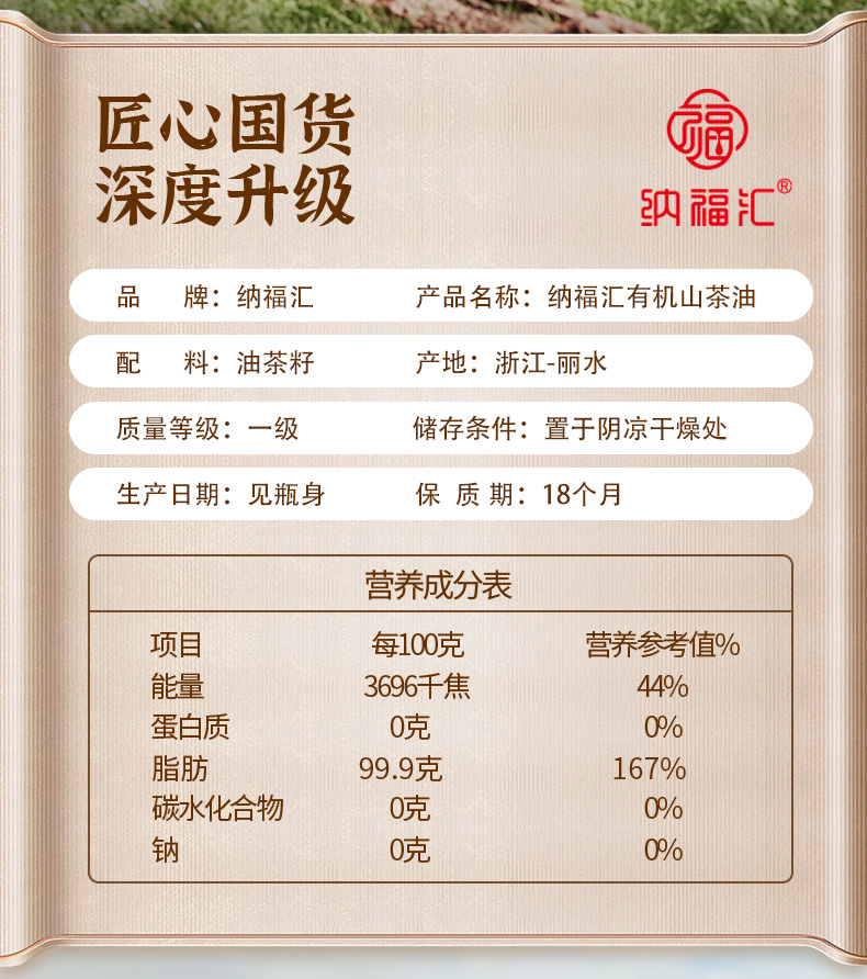 纳福汇 福禄山茶油 G-03 500ml*2 天蓝色(单位:盒)