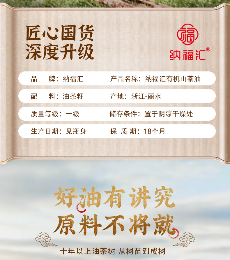 纳福汇 呈祥高山红花有机山茶油 G-12 750ml*2 绿色(单位:盒)