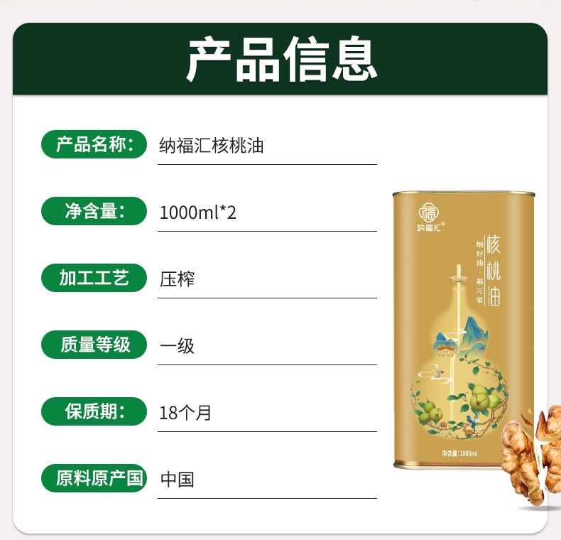 纳福汇 压榨一级核桃油 G-28 1000ml*2 橙色(单位:盒)
