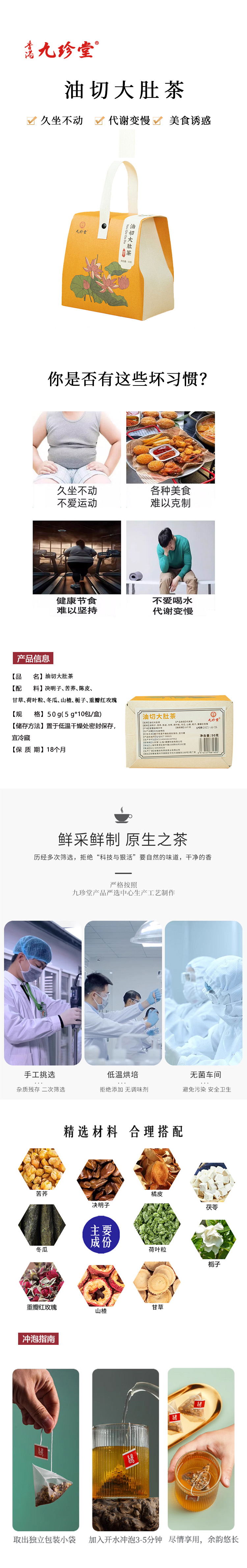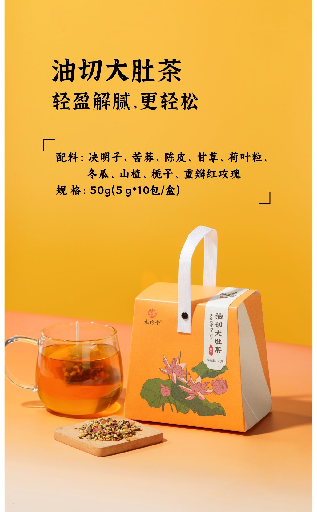 九珍堂 冬瓜荷叶茶决明子山楂陈皮大肚腩肥胖消食养生茶 提袋礼盒 5g*10包/盒 橙色(单位:盒)