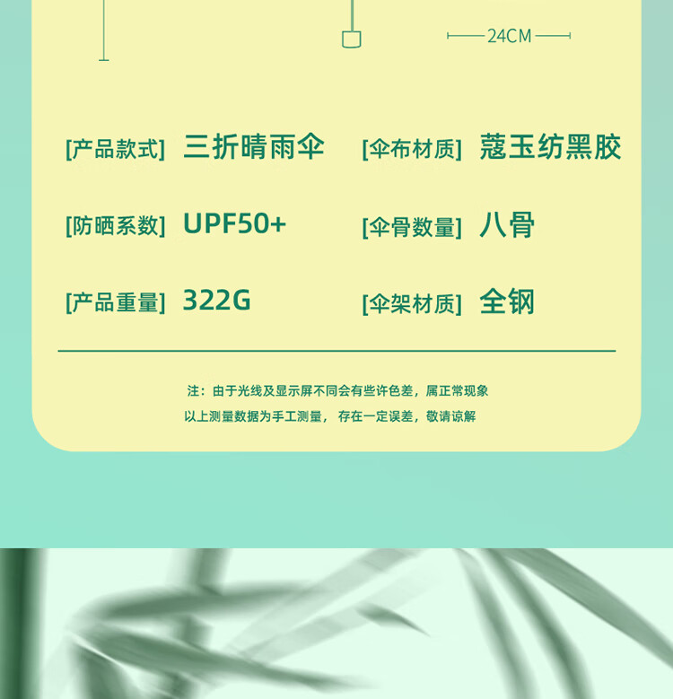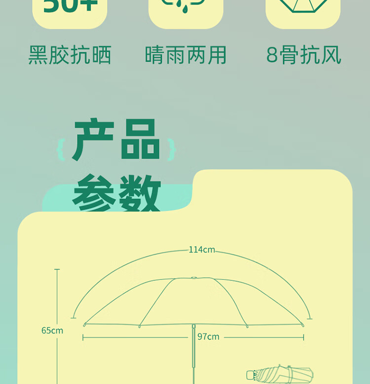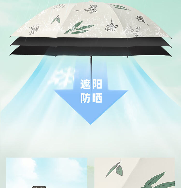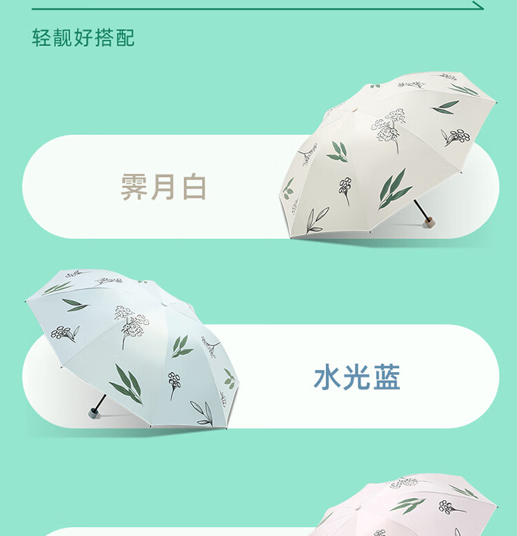 天堂 防晒晴雨伞三折 33942E 57cmX8骨 霁月白(单位:把)