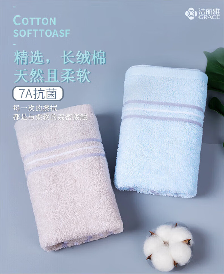 洁丽雅(Grace) 毛巾礼盒 新疆棉7A级抗菌 72*34cm*2条 混色(单位:盒)
