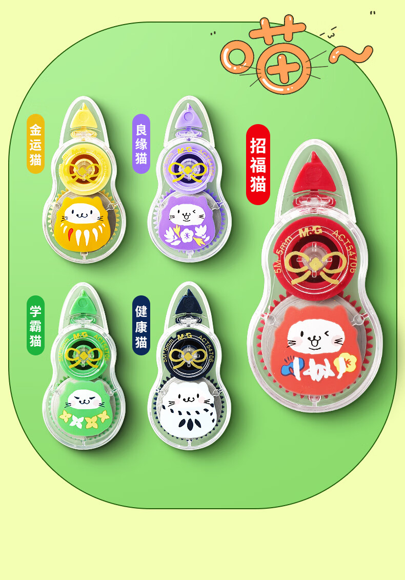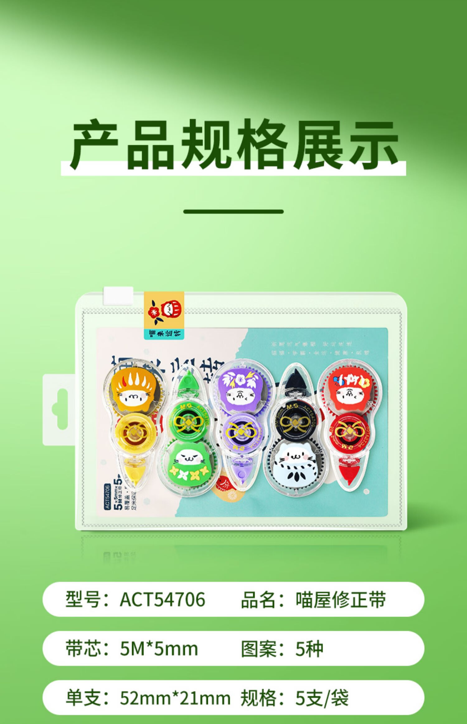晨光(M&G) 喵来运转学生修正带 ACT54706 5m*5mm 5支/卡 混色(单位:卡)