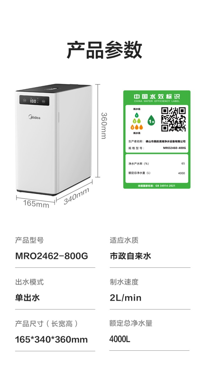 美的(Midea) 净水机 MRO2462-800G 800G 白色(单位:台)