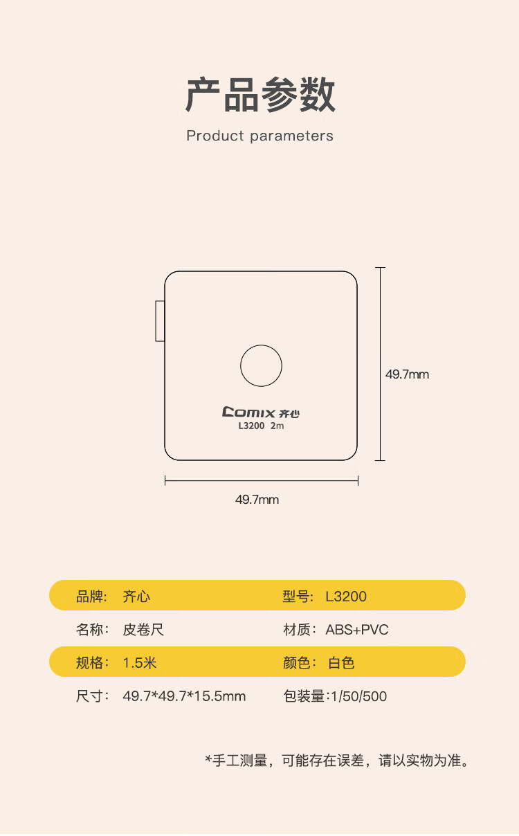 齐心(COMIX) 方形皮卷尺 L3200 2m 白色(单位:把)