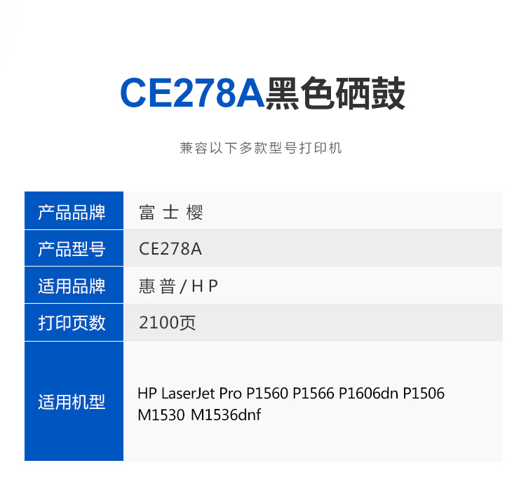 富士樱 硒鼓(鼓粉一体)黑色单支装 FCE-278A 2100页 黑色(单位:支)