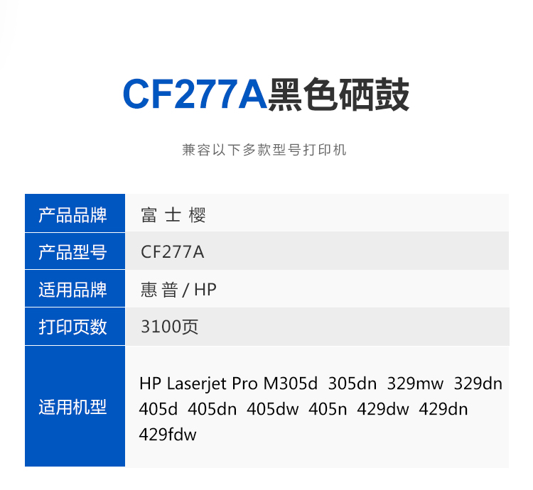 富士樱 77A硒鼓 FCE-CF277A(无芯片) 3100页 黑色(单位:支)