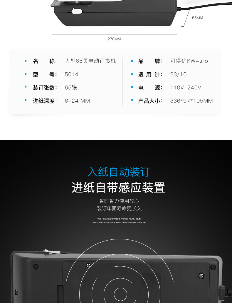 可得优(KW-triO) 电动加厚订书机(80页) 5014 A4纸65张 白色(单位:台)