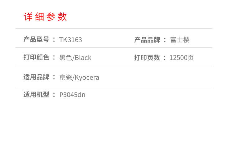 富士樱 墨粉盒 FC-TK3163 12500页 黑色(单位:支)