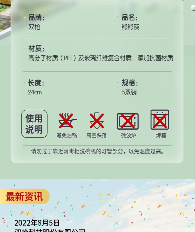 双枪(Suncha) 熊熊筷 DK40536 5双装 混色(单位:套)