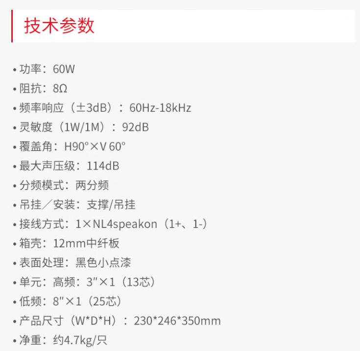得胜(TAKSTAR) 音箱 KP-8 功率60W 曜石黑(单位:只)