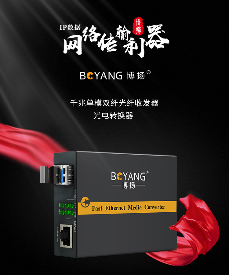 博扬 千兆双纤单模光纤收发器 光电转换器 BY-WG811S 0.4kg 黑色(单位:台)