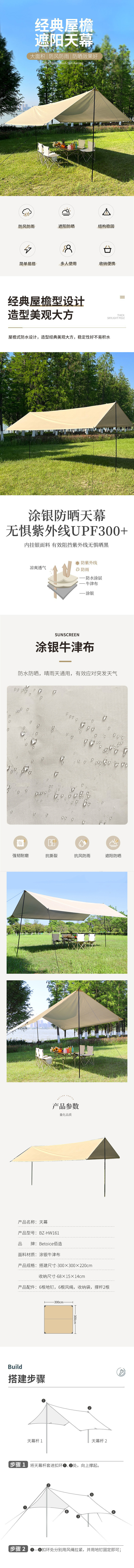 佰造 露营天幕 BZ-HW161 搭建尺寸-300×300cm收纳尺寸-68×15×14cm 象牙色(单位:个)