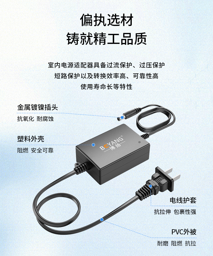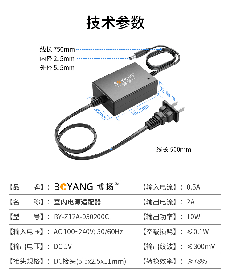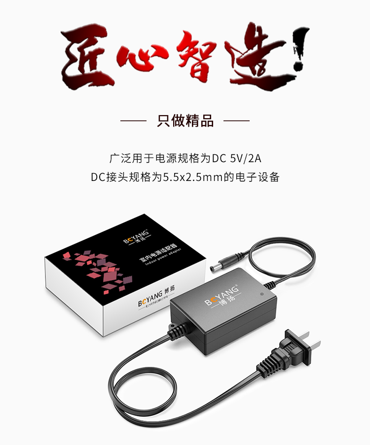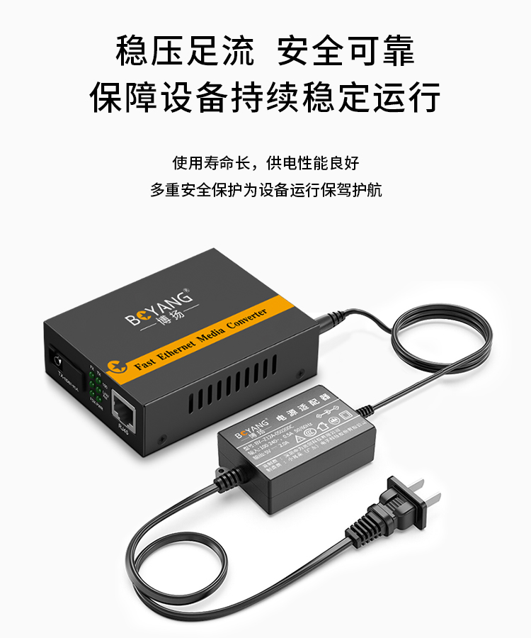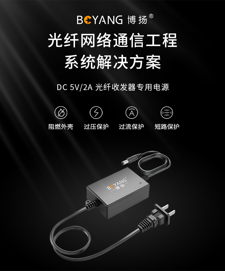 博扬 光纤收发器专用电源 室内电源适配器 DC5V2A 稳压足流 BY-Z12A-050200C 0.10kg 黑色(单位:个)