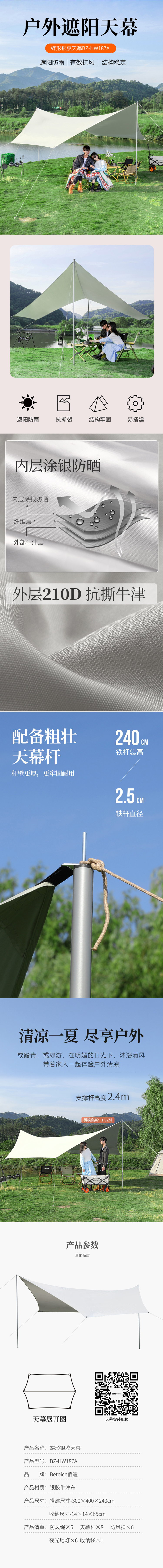 佰造 蝶形银胶天幕 BZ-HW187A BZ-HW187A 300*400*240cm 白色(单位:个)