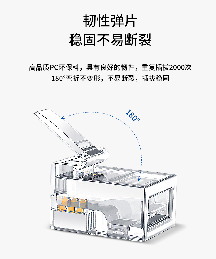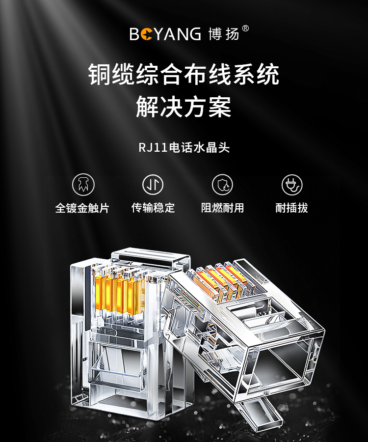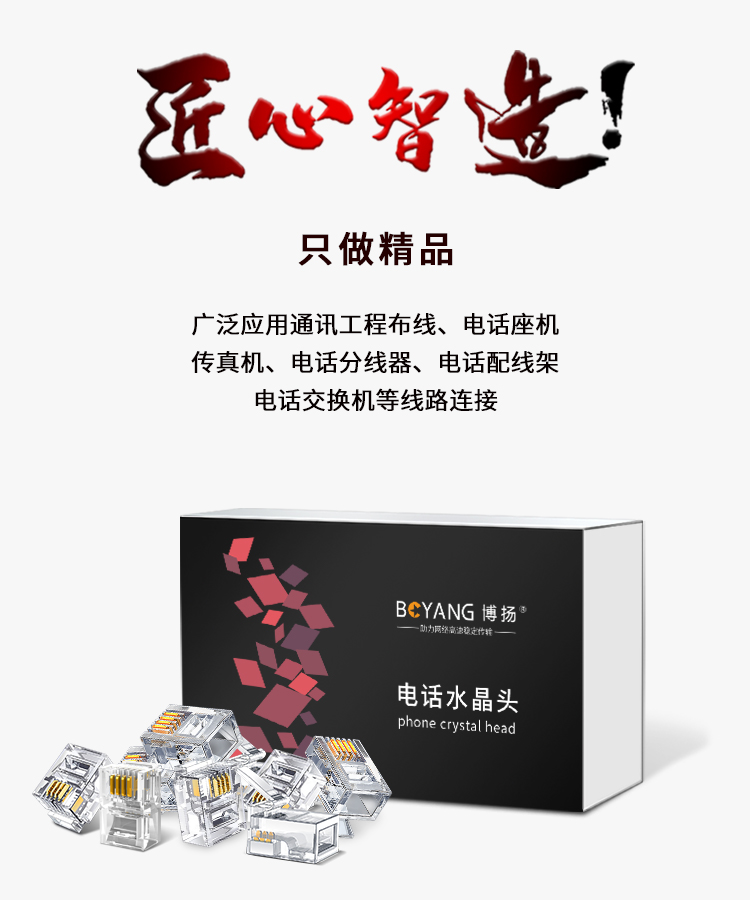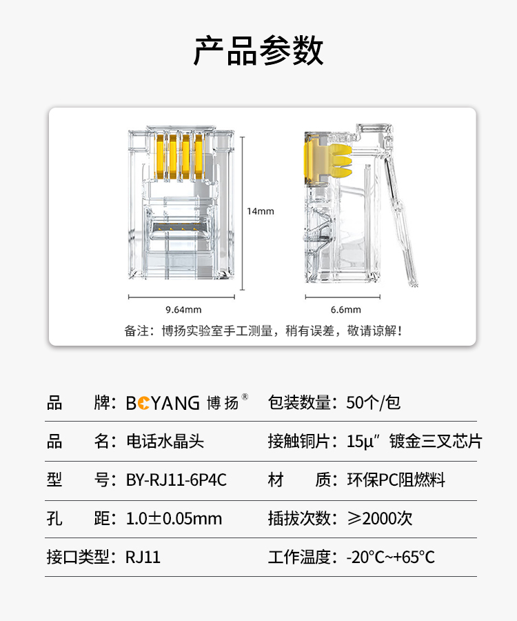 博扬 电话水晶头三叉式 4芯语音电话线接头 BY-RJ11-6P4C 50个 白色(单位:盒)