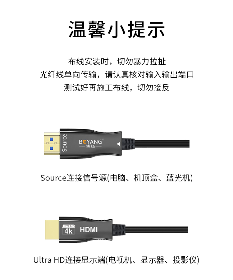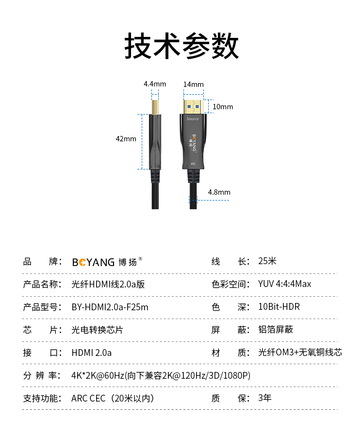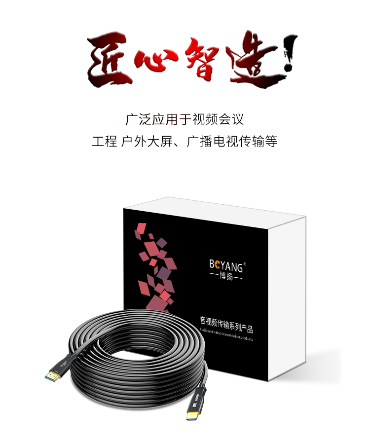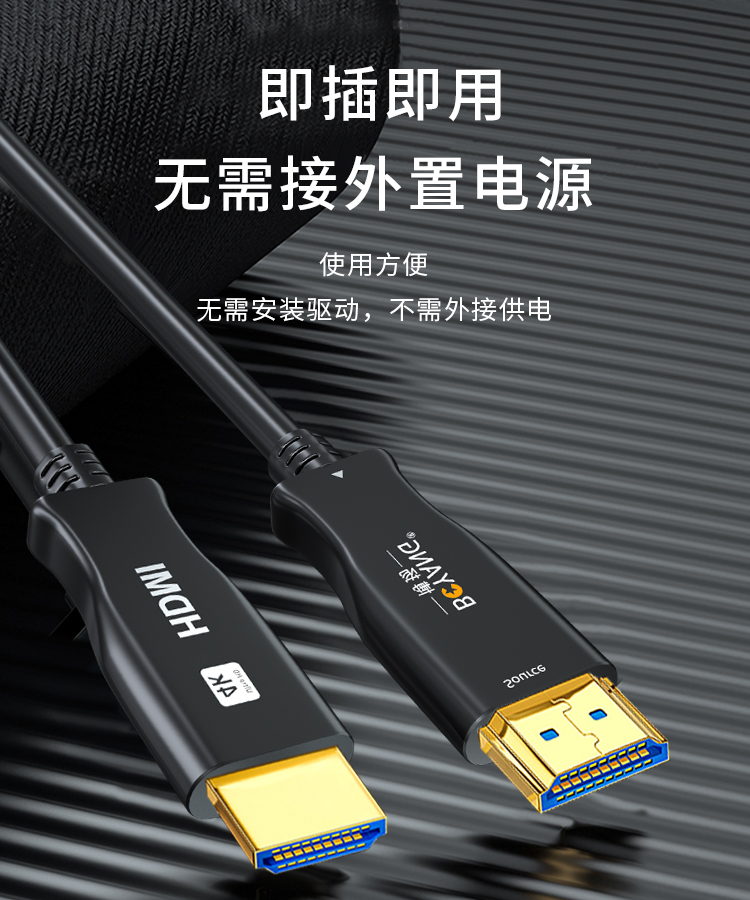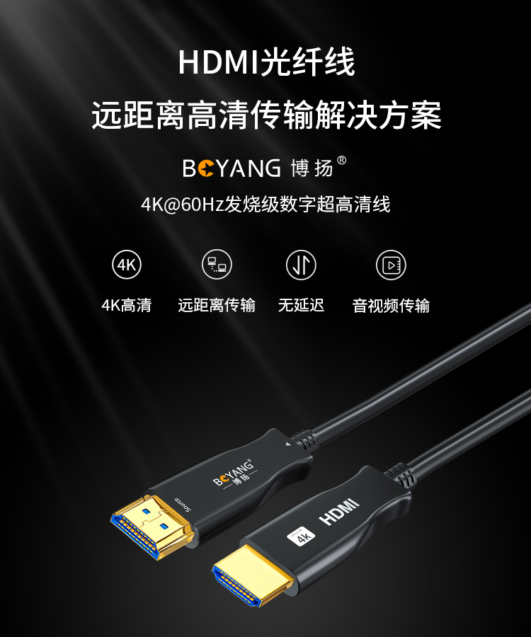 博扬 光纤HDMI线2.0版UHD 4K@60Hz HDR 18G BY-HDMI2.0a-F25m 0.8kg 黑色(单位:条)