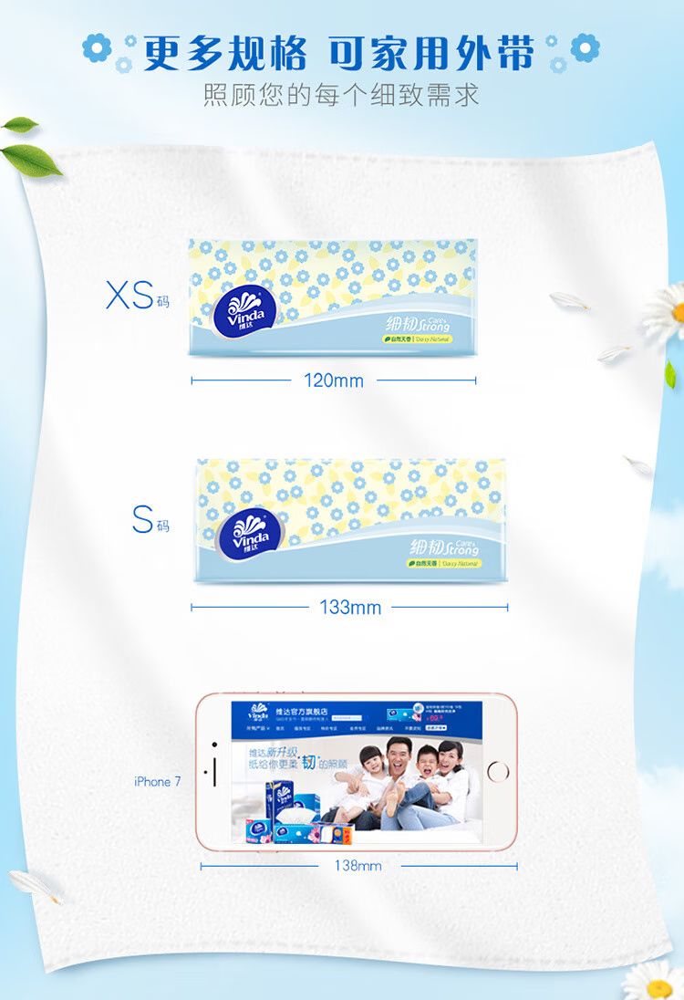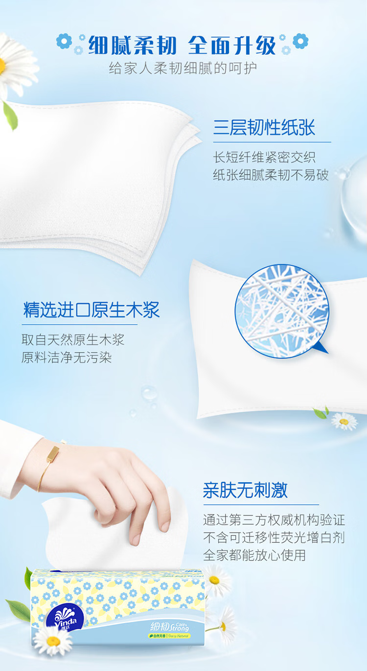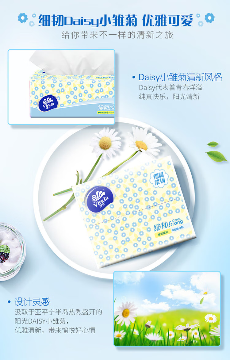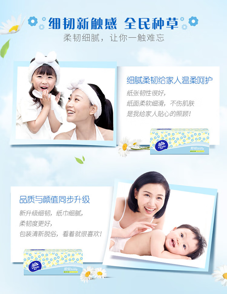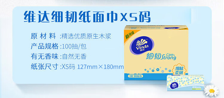 维达 细韧抽纸XS码 V2619 3层100抽8包 淡蓝色(单位:组)