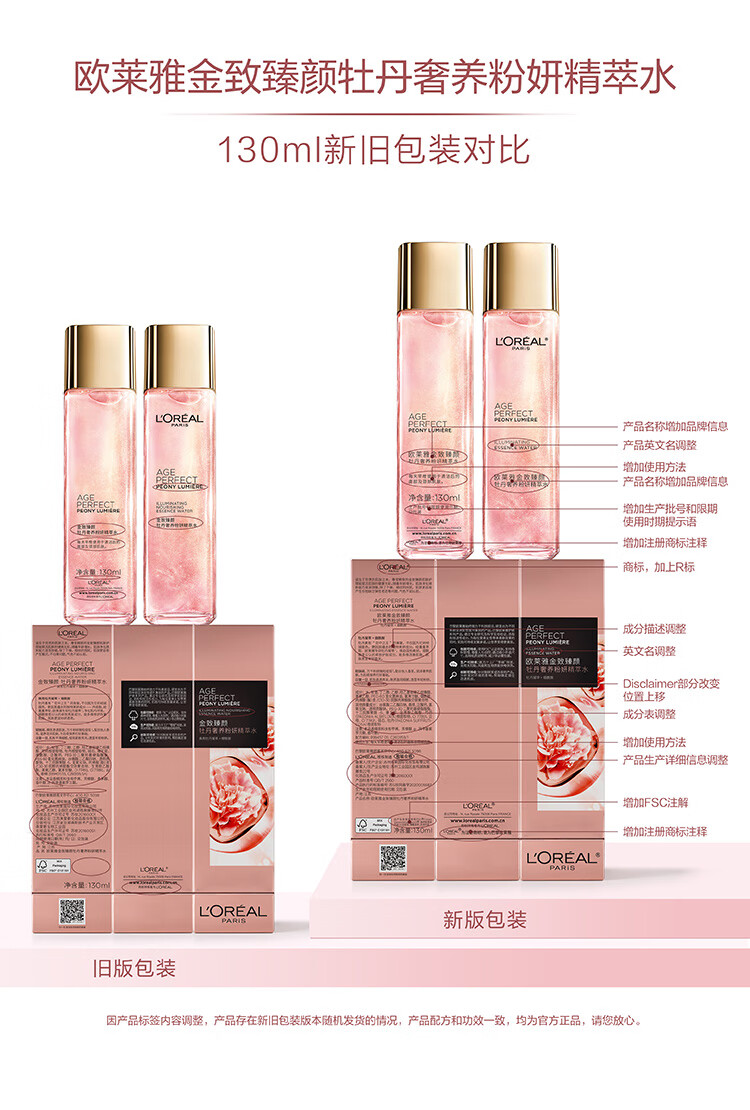欧莱雅(LOREAL ) 精粹水 金致臻颜牡丹奢养粉妍 130ml 粉色(单位:瓶)