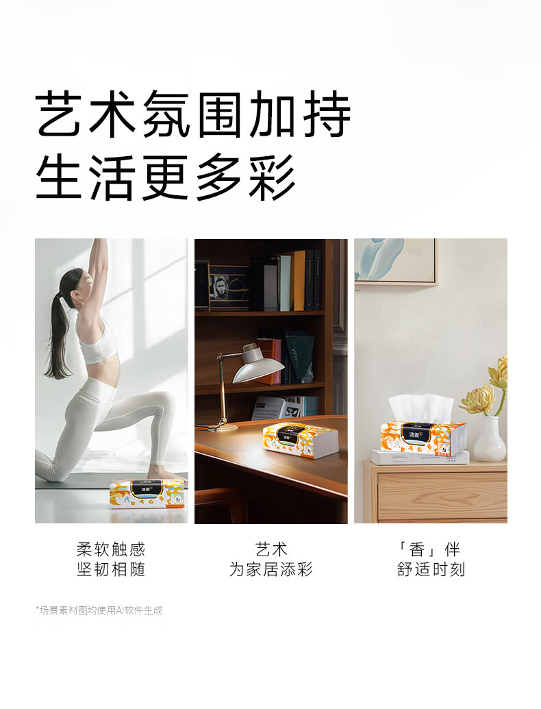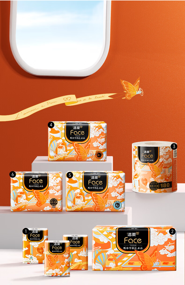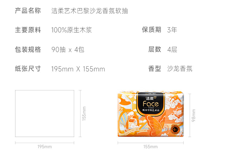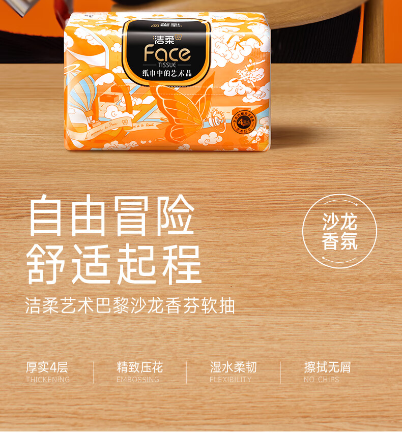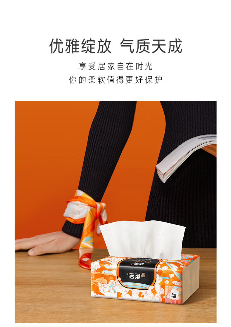 洁柔(C&S) 艺术巴黎抽纸 BR233-04E-4B 4层90抽4包 橙色(单位:提)