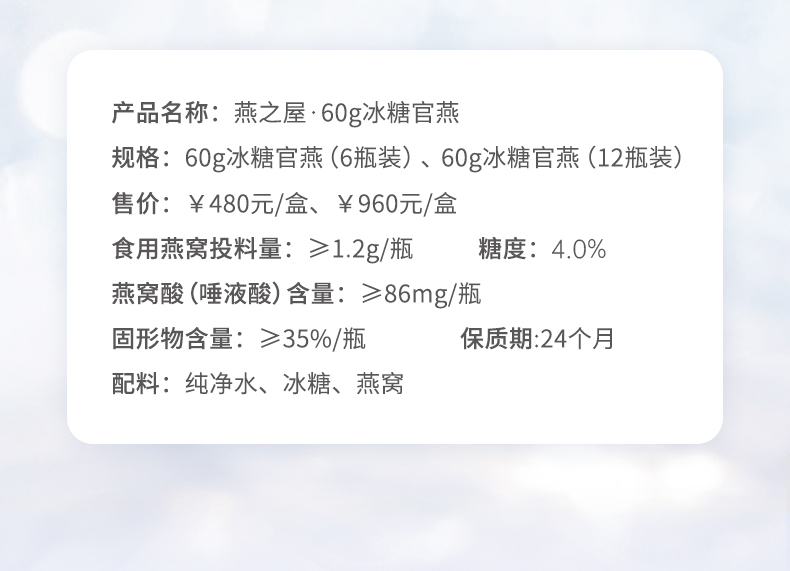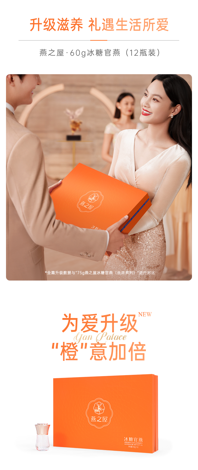 燕之屋 即食燕窝经典配方 冰糖橙心款 60g*12瓶 橙色(单位:盒)