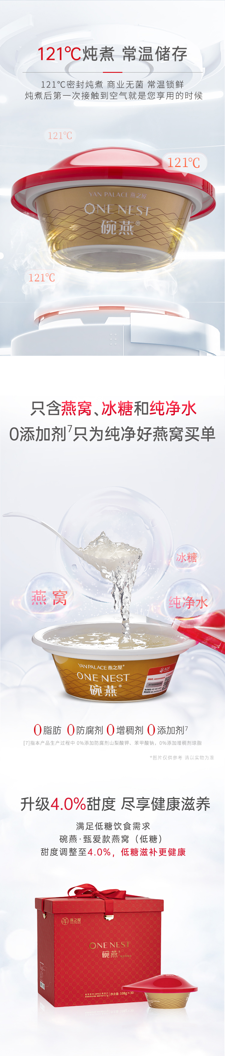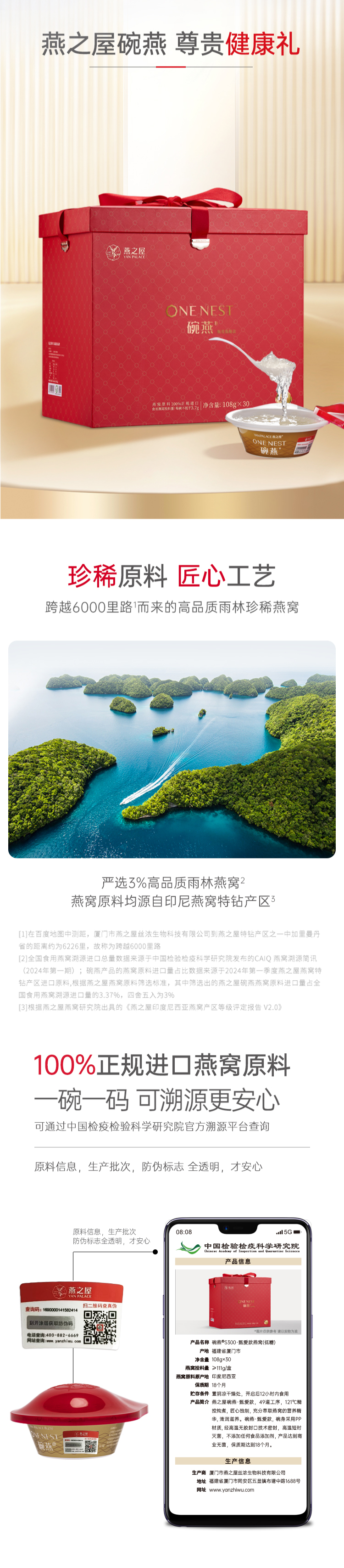 燕之屋 碗燕甄爱低糖款 S500燕窝 108g*30碗礼盒装 红色(单位:盒)