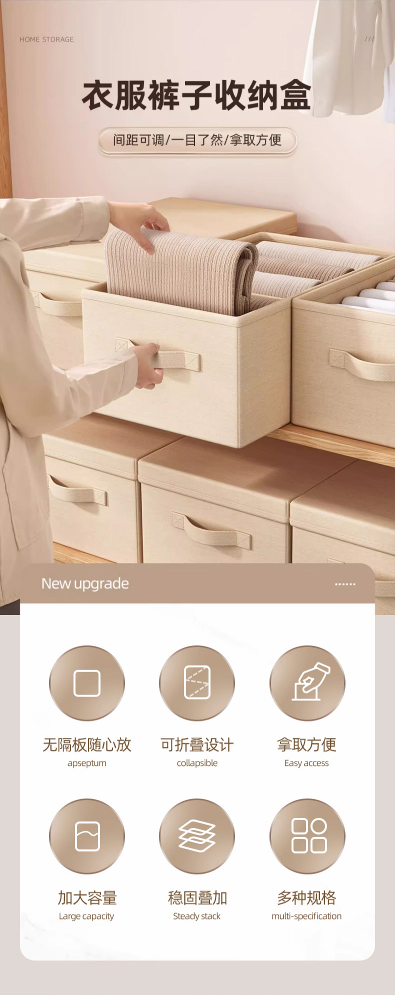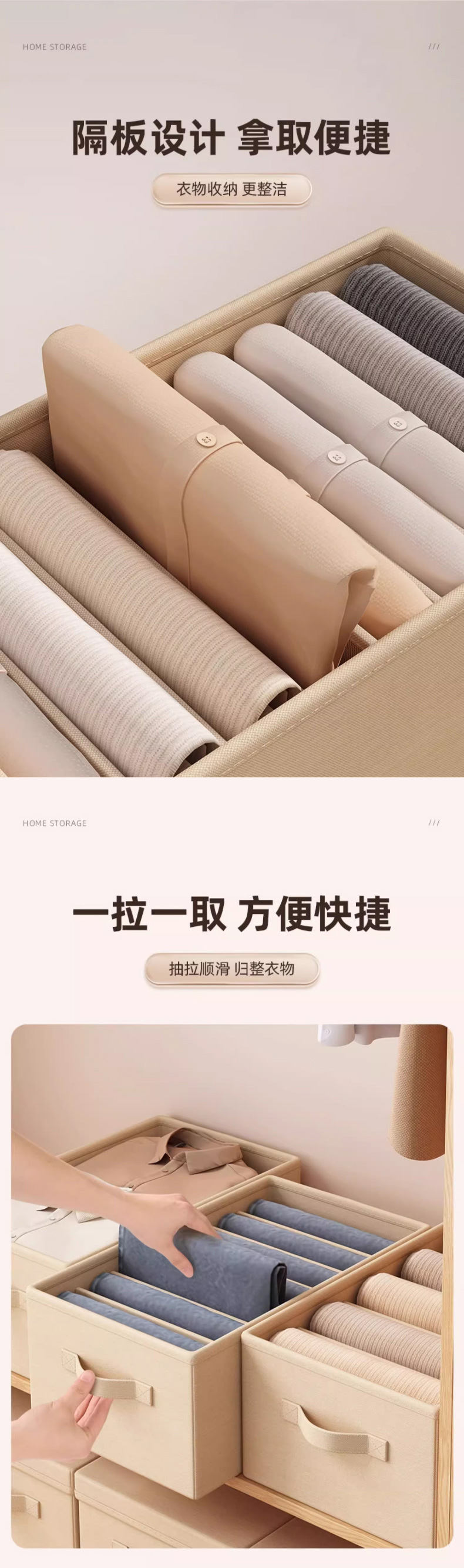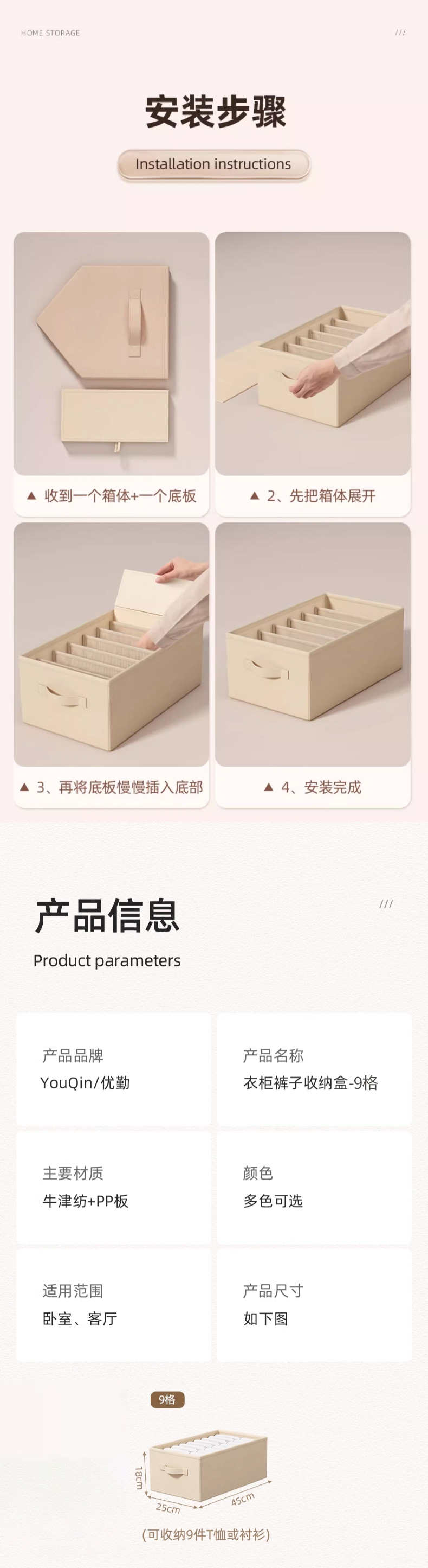 优勤(YOUQIN) 裤子收纳盒(有盖)9格 979-7N 45*25*18cm 米色(单位:个)