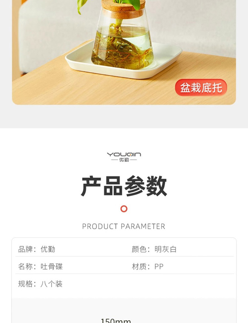 优勤(YOUQIN) 方盘吐骨盘8盘吐骨盘收纳沥水架 JR-X15CMFPTGPSP-BS#+JR-XTGPSNLSJ-BS# 吐骨盘*8个+收纳沥水架*1个 白色(单位:套)