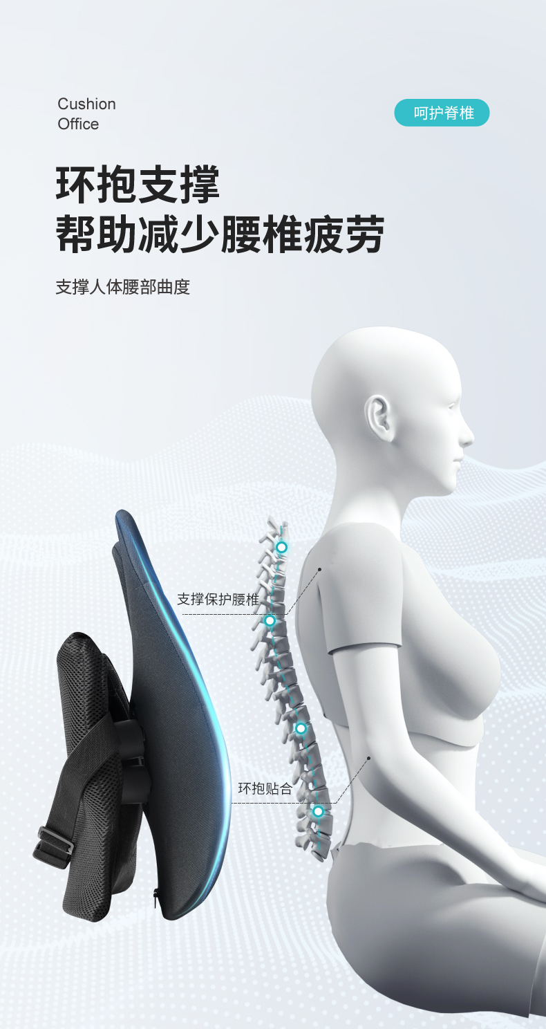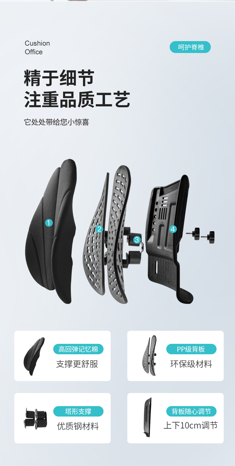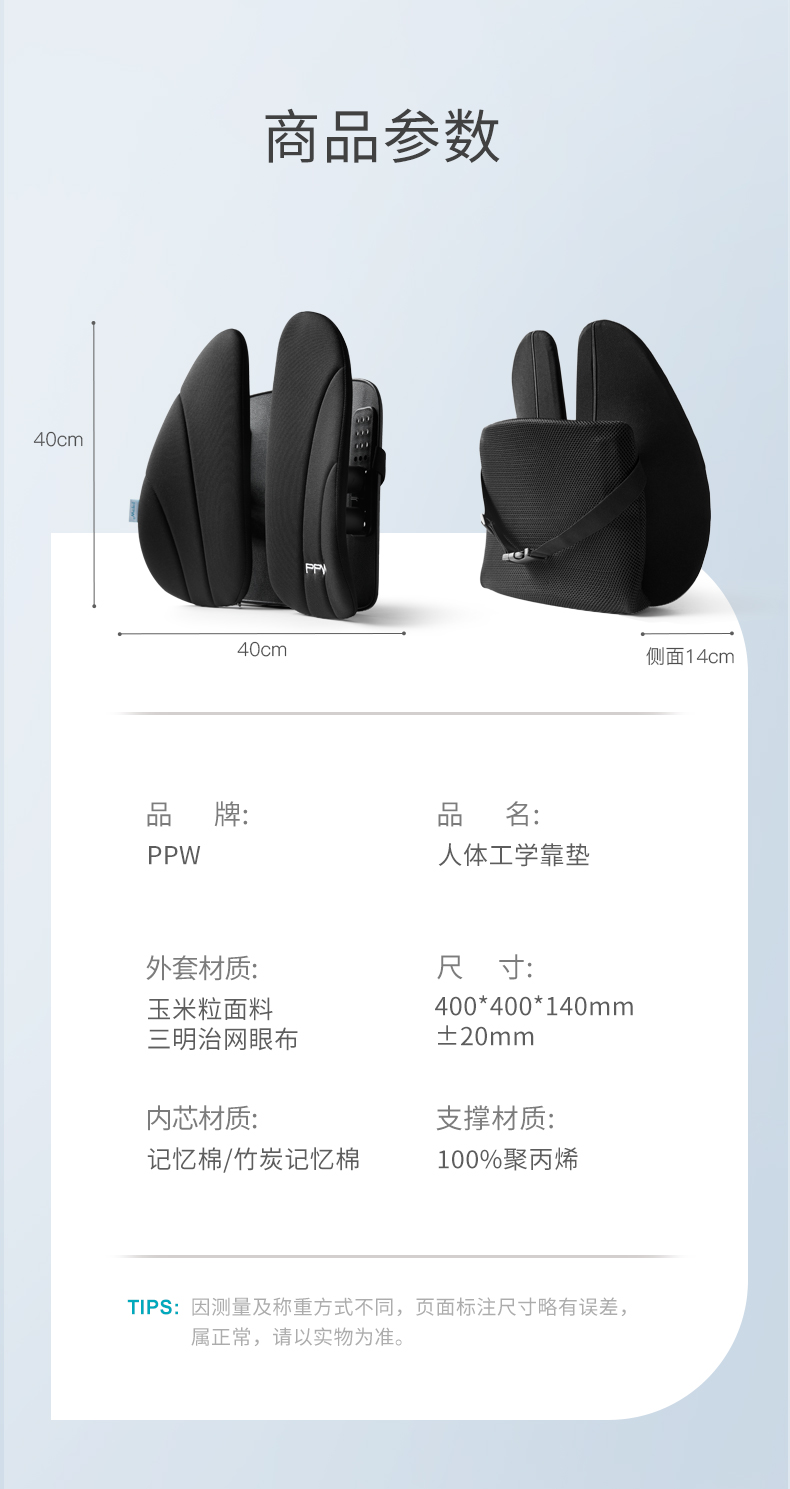 PPW 人体工学腰垫汽车腰靠办公室靠垫减压车座腰枕座椅椅子四季通用加厚记忆棉款上下可调节单位:个 黑色