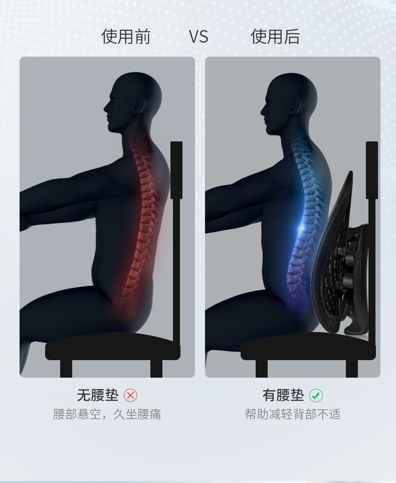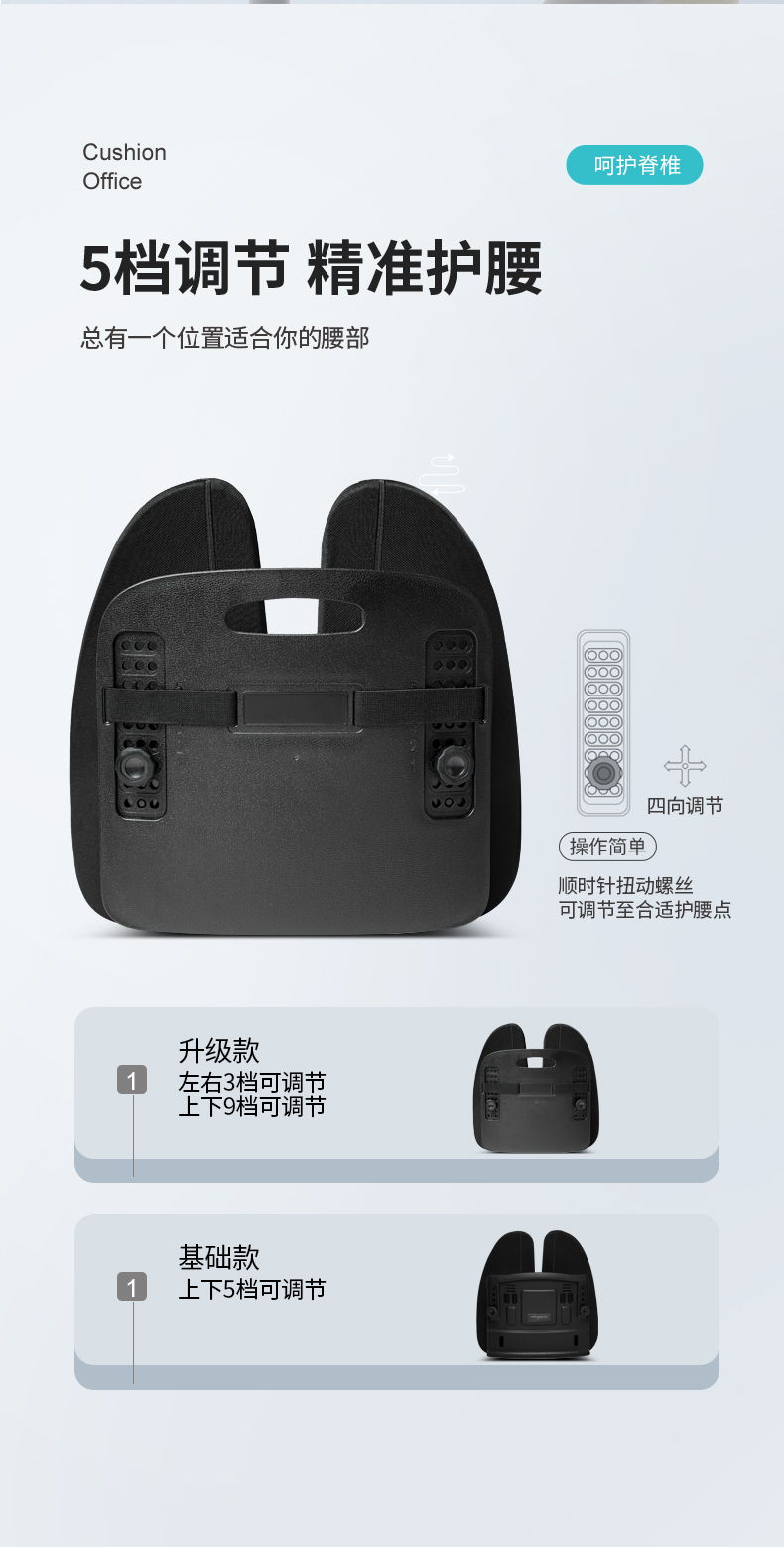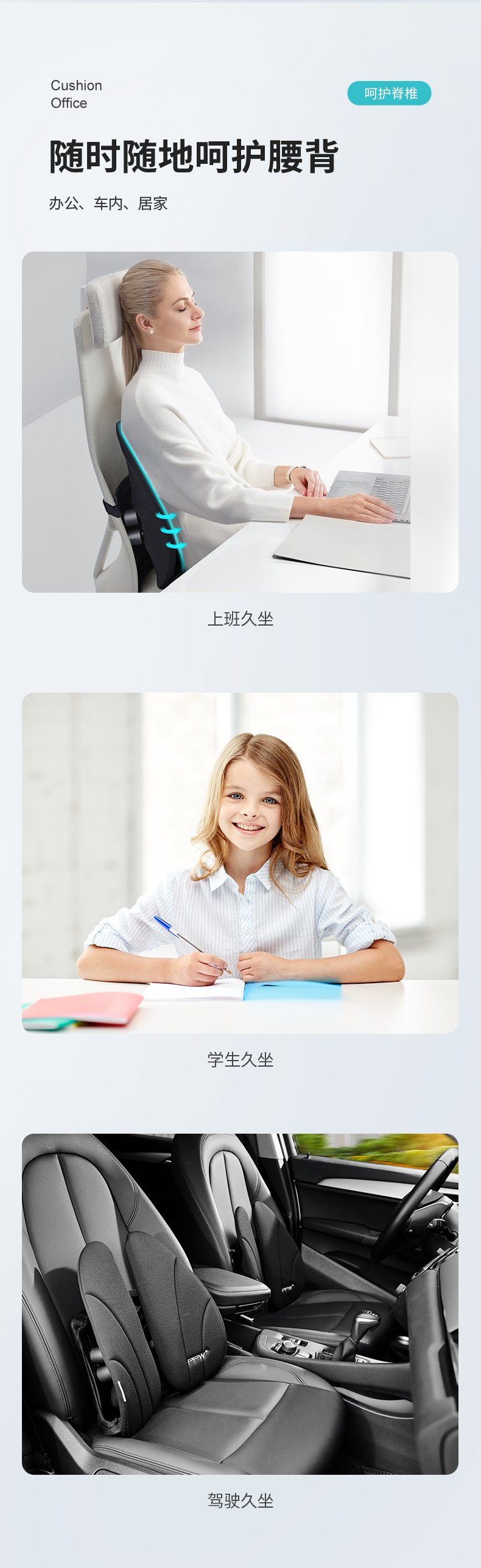 PPW 人体工学腰垫汽车腰靠办公室靠垫减压车座腰枕座椅椅子四季通用加厚记忆棉款上下可调节单位:个 黑色