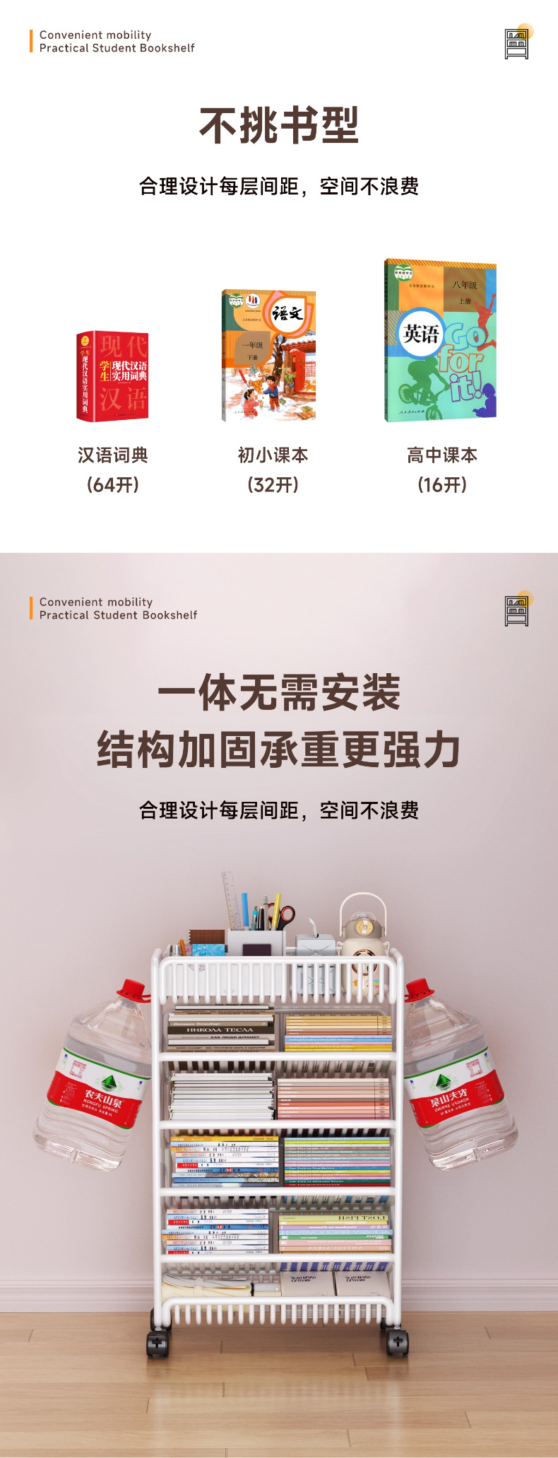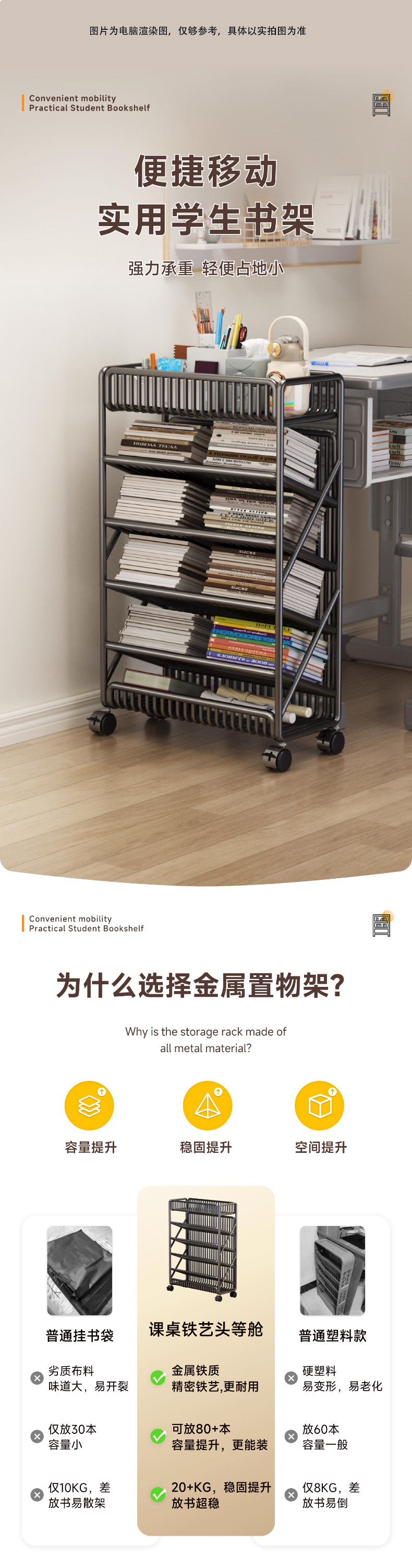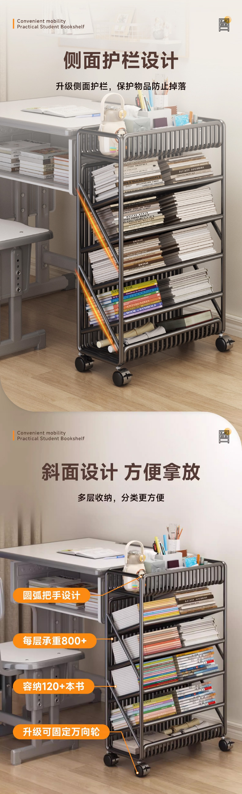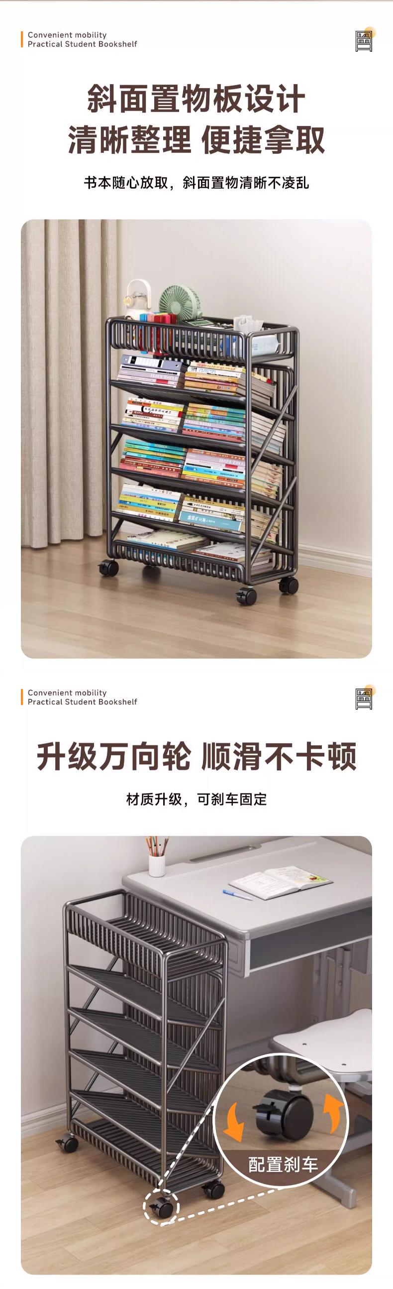 优勤(YOUQIN) TE加粗落地书架6层 1401-15Y 45*20*65cm/带轮带侧杆 黑色(单位:个)
