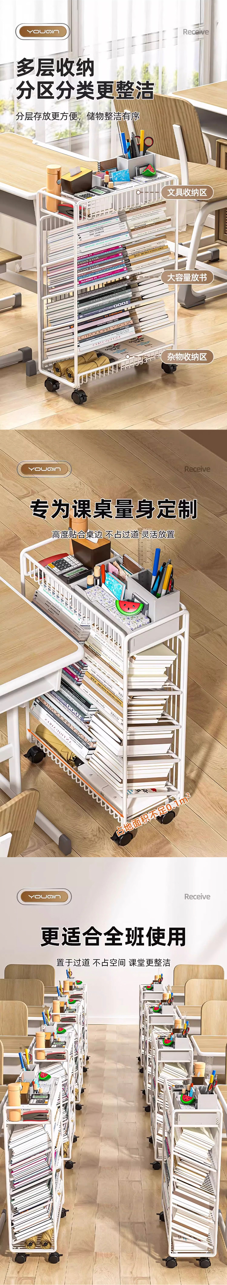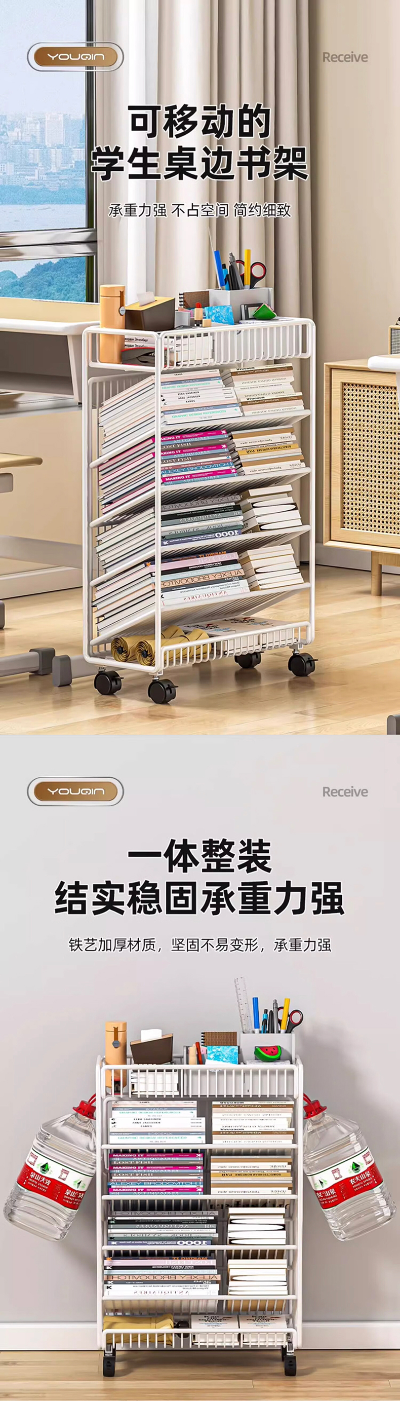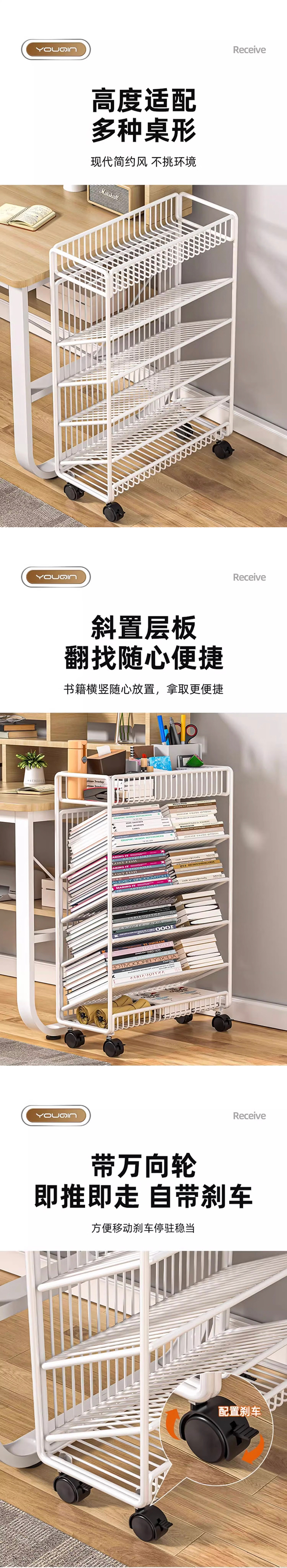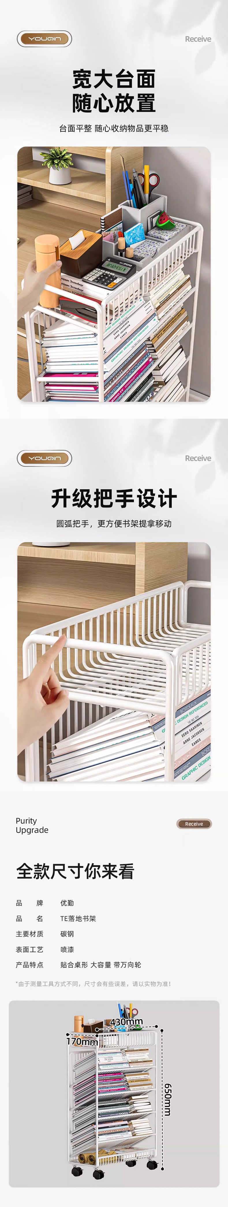 优勤(YOUQIN) TE加粗落地书架6层 1401-16Y 43*17*65cm/带轮带侧杆 白色(单位:个)