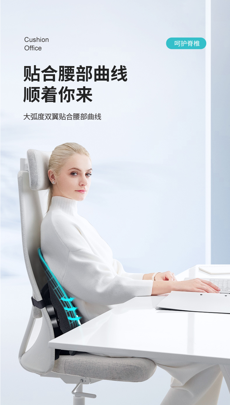 PPW 人体工学腰垫汽车腰靠办公室靠垫减压车座腰枕座椅椅子四季通用 弹簧支撑-气囊调节款黑色单位:个 黑色