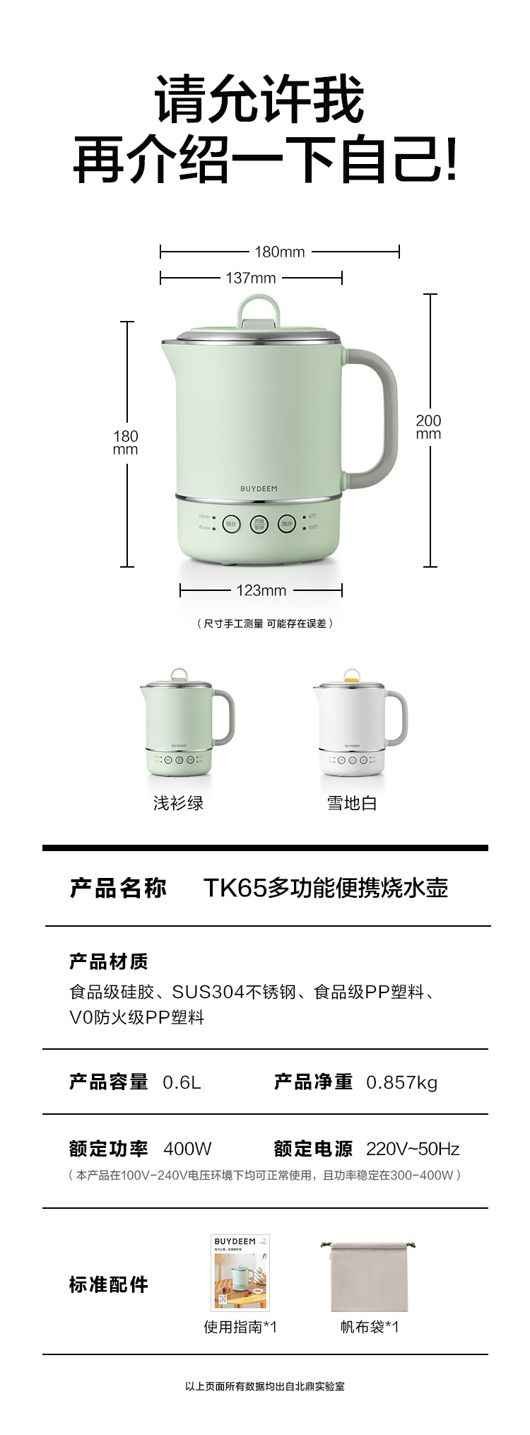 北鼎(Buydeem) 电水壶 TK65 600ML 雪地白(单位:个)
