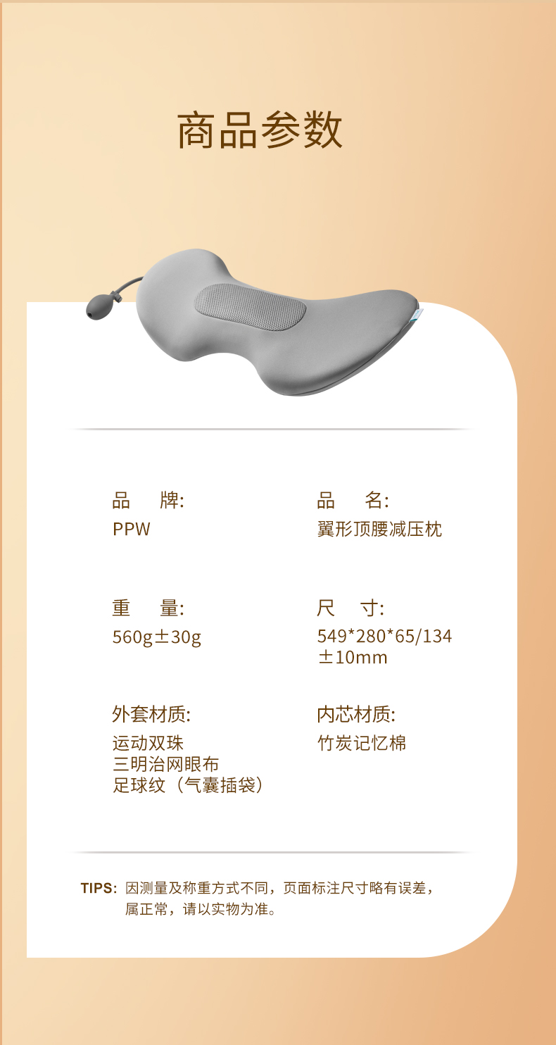 PPW腰枕垫床上腰托腰椎枕睡觉腰垫腰间盘睡眠垫腰孕妇侧睡垫腰椎垫 翼形顶腰减压枕【气动款】单位:个 灰色