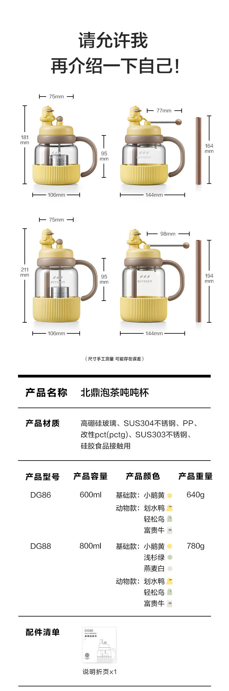 北鼎(Buydeem) 泡茶吨吨杯 DG88/A1 800ml 浅衫绿(单位:个)