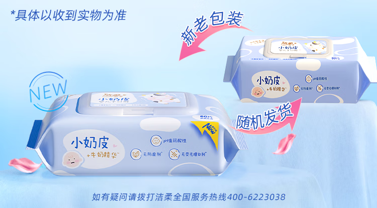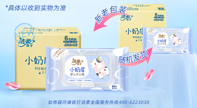 洁柔(C&S) 小奶皮湿巾 JS243-06E-1B+QPD 80片 蓝色(单位:包)