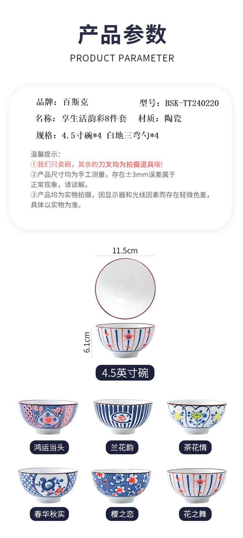 百斯克 享生活韵彩8件餐具套装 BSK-TT240220 4.5寸碗*4 白地三弯勺*4 彩色(单位:套)
