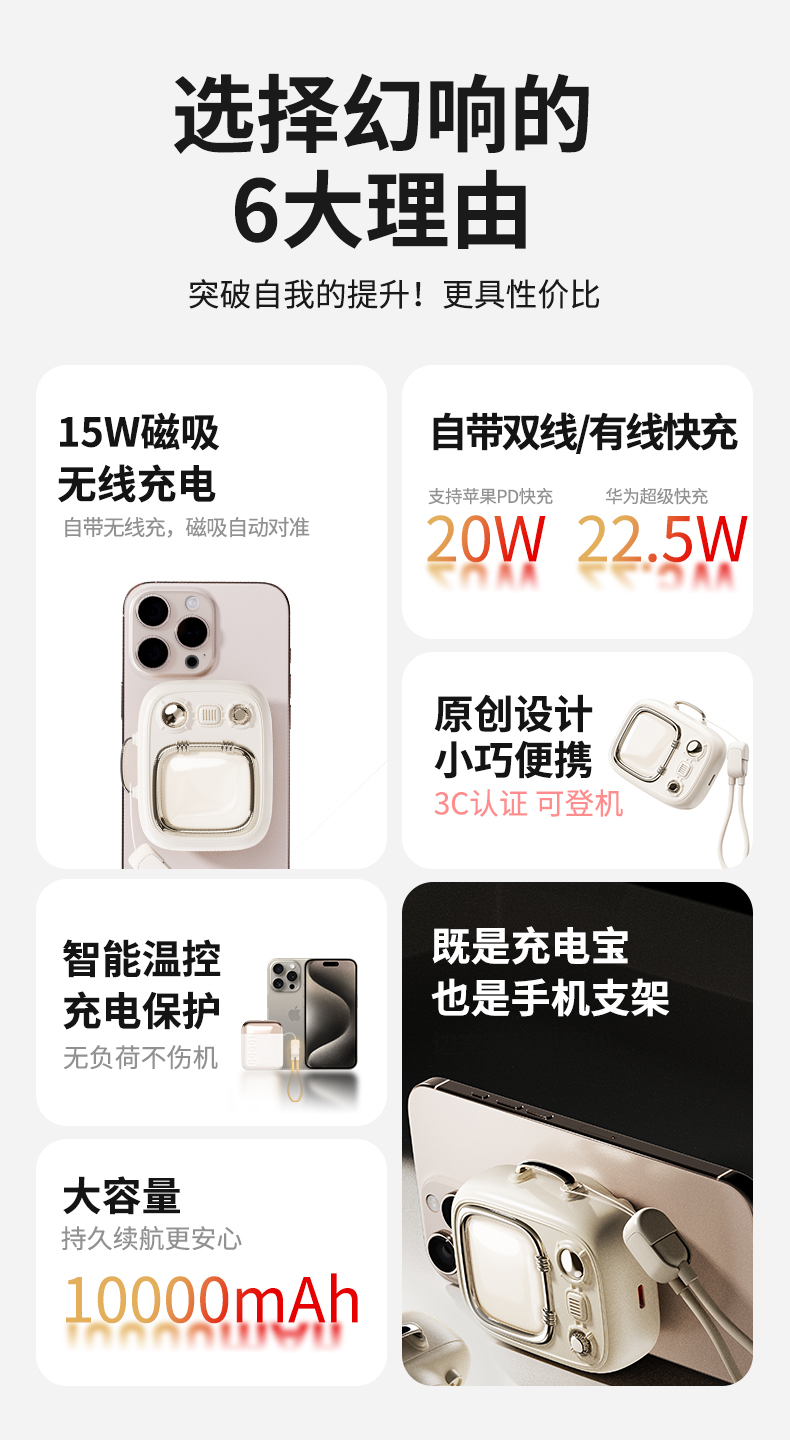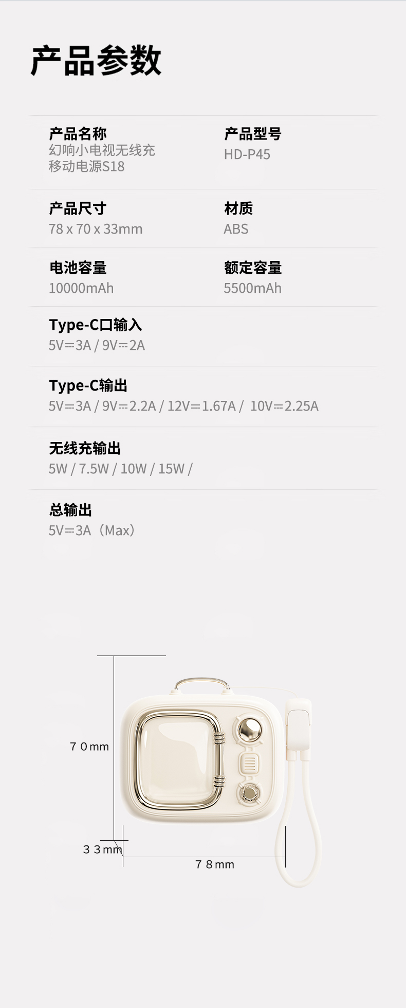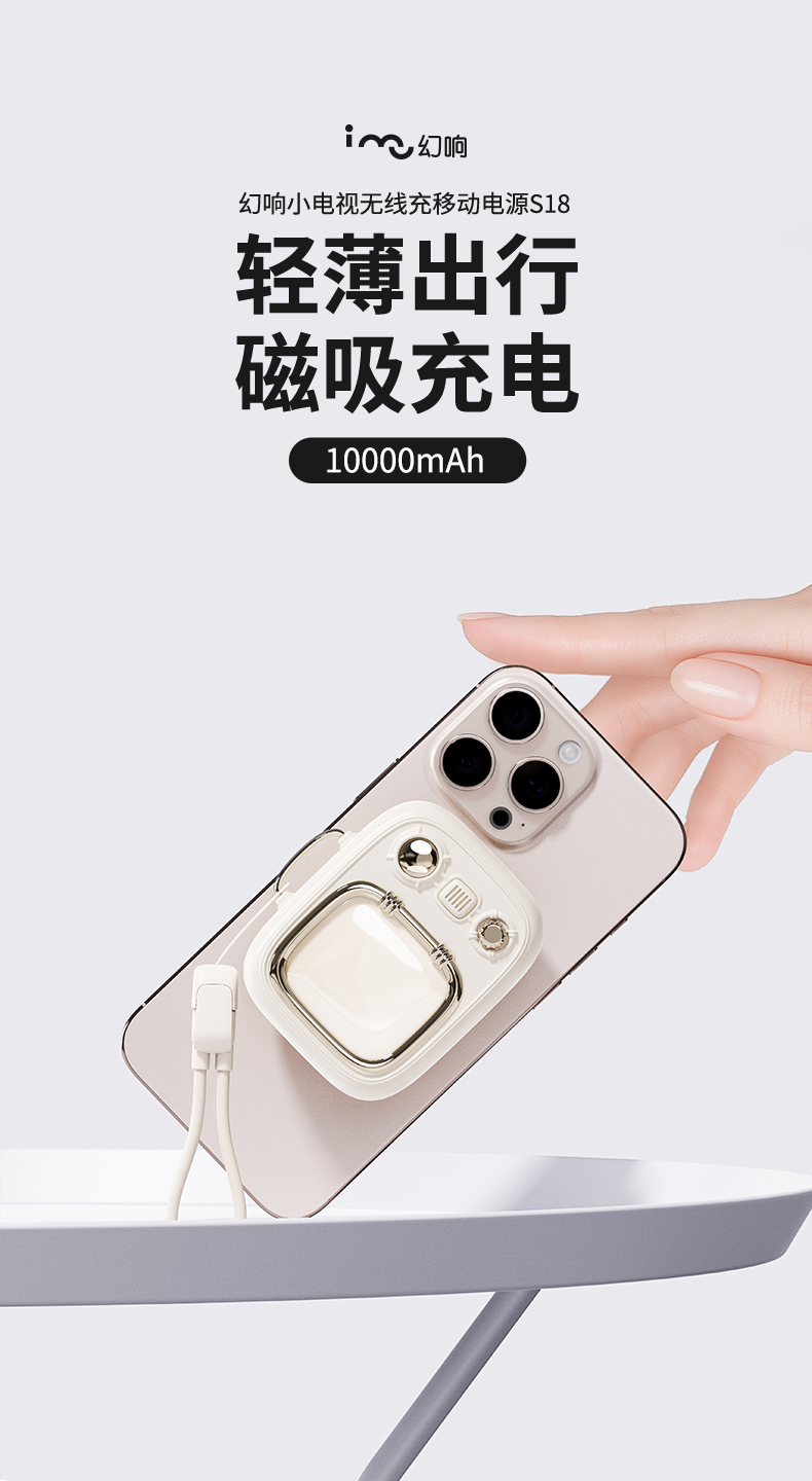 幻响(i-mu) 幻响小电视无线充移动电源S18 HD-P45 10000mAh 白色(单位:个)