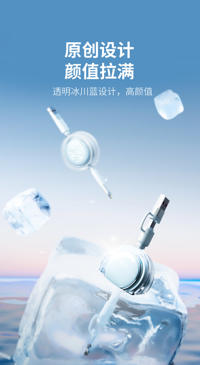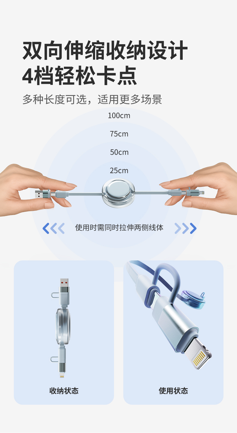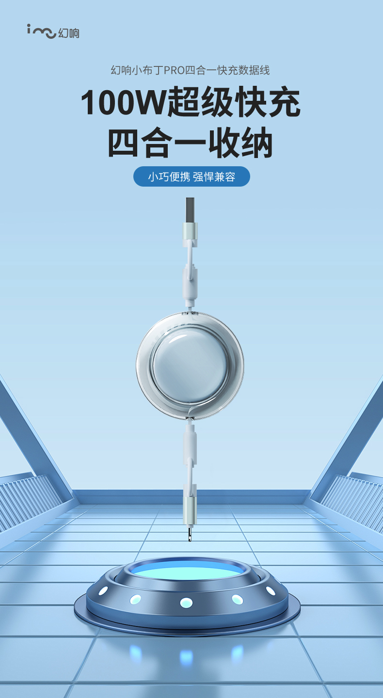 幻响(i-mu) 小布丁100W超级快充抽拉线 HD-E36 四合一 水蓝色(单位:个)