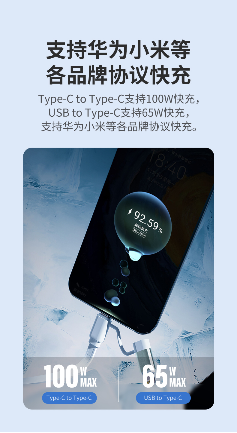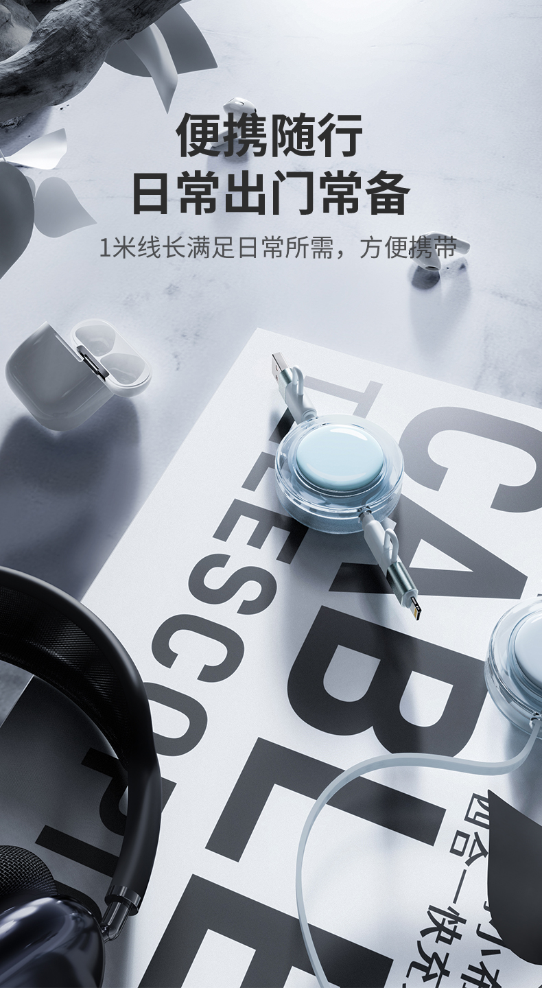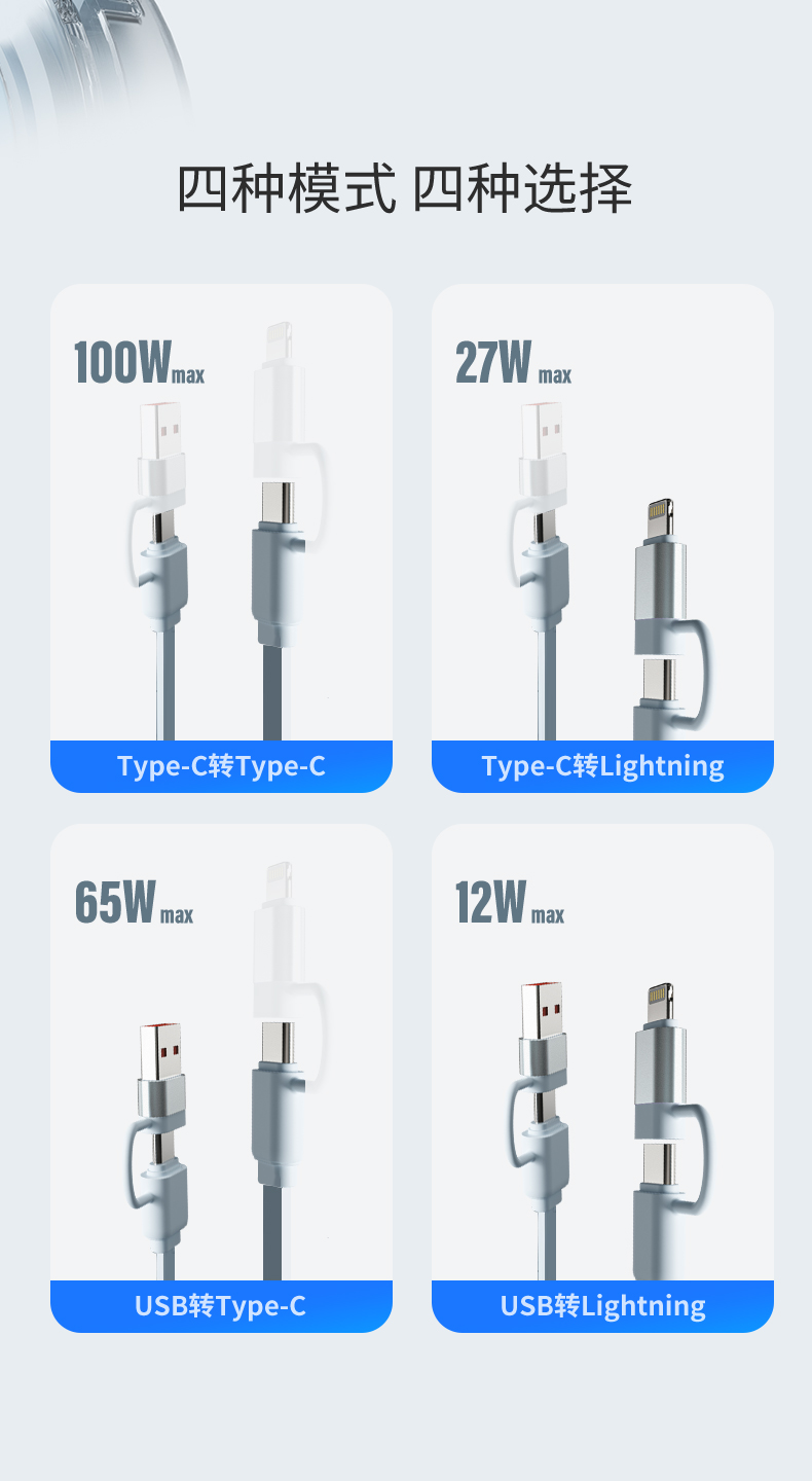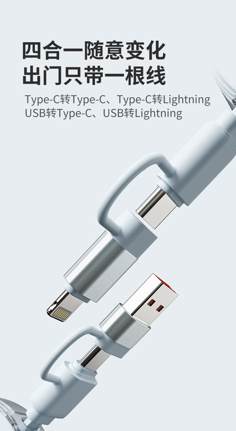 幻响(i-mu) 小布丁100W超级快充抽拉线 HD-E36 四合一 水蓝色(单位:个)
