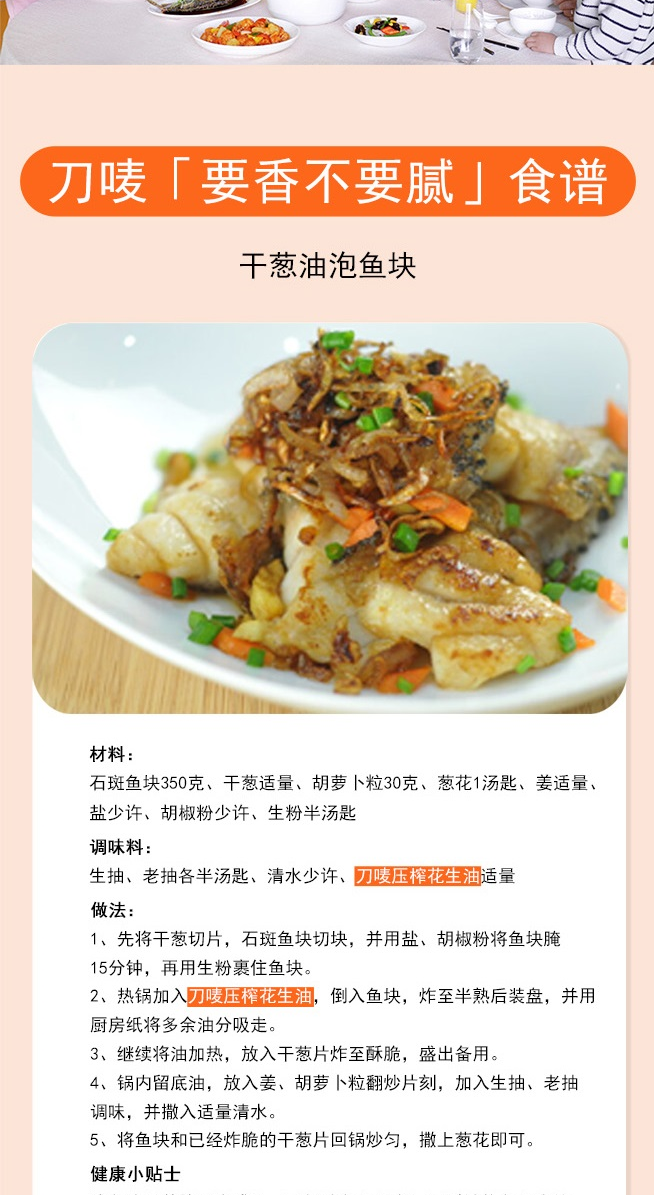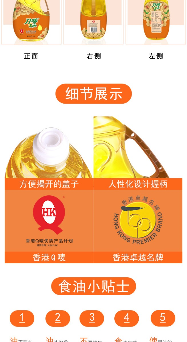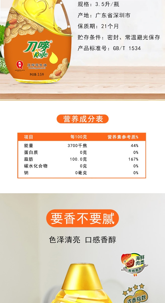 刀唛(Knife) 浓香压榨一级 花生油 3.5L 橙色(单位:瓶)