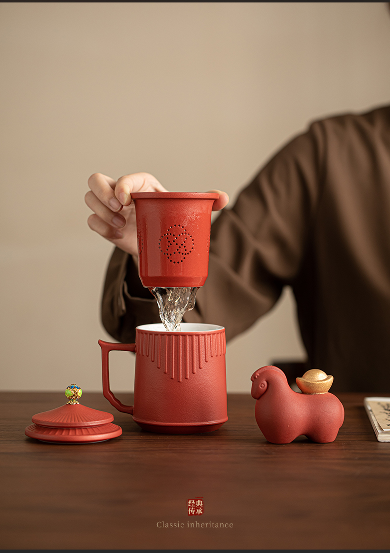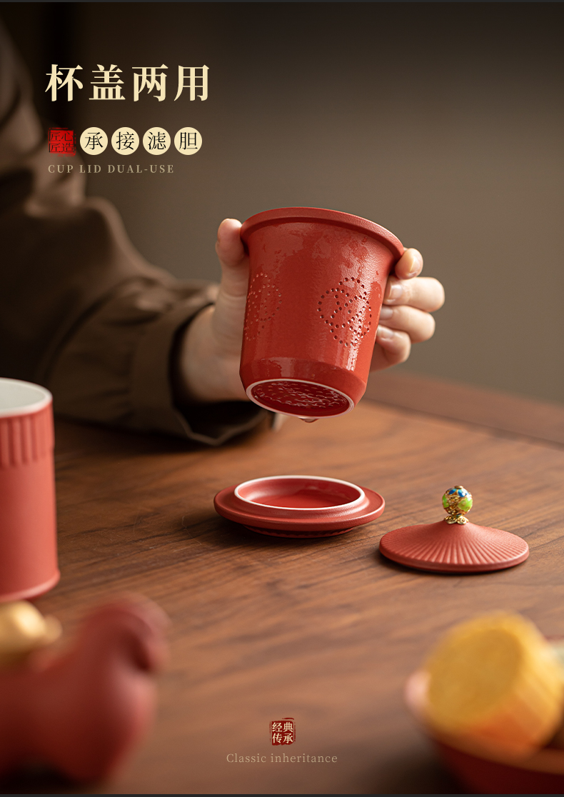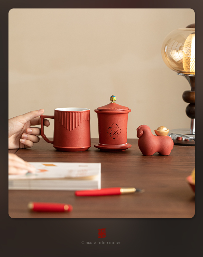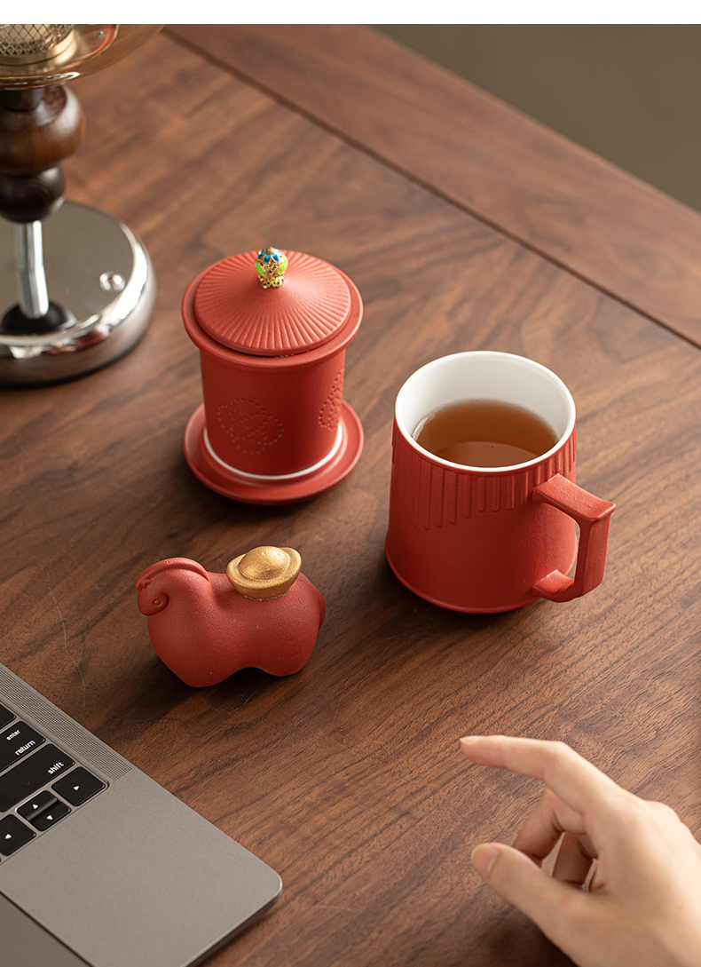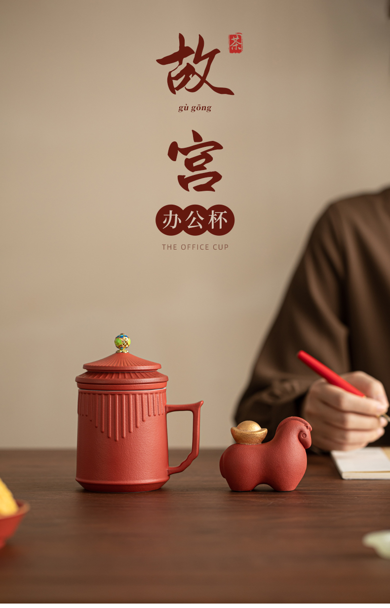 苏氏陶瓷(SUSHI CERAMICS) 故宫禾黍宝鼎办公杯茶宠组 J1282 办公杯茶宠*2头 红色(单位:套)