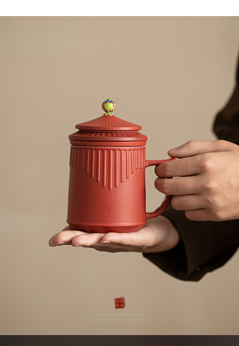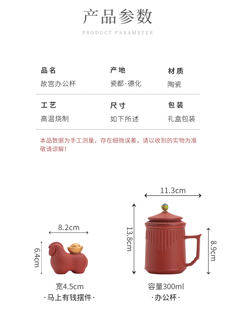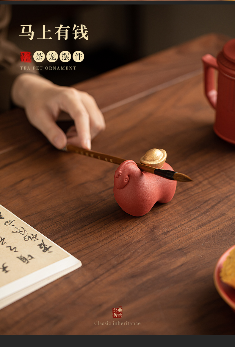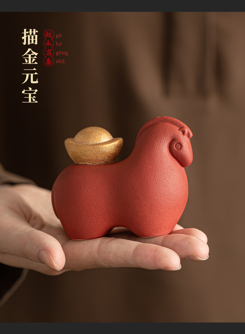 苏氏陶瓷(SUSHI CERAMICS) 故宫禾黍宝鼎办公杯茶宠组 J1282 办公杯茶宠*2头 红色(单位:套)