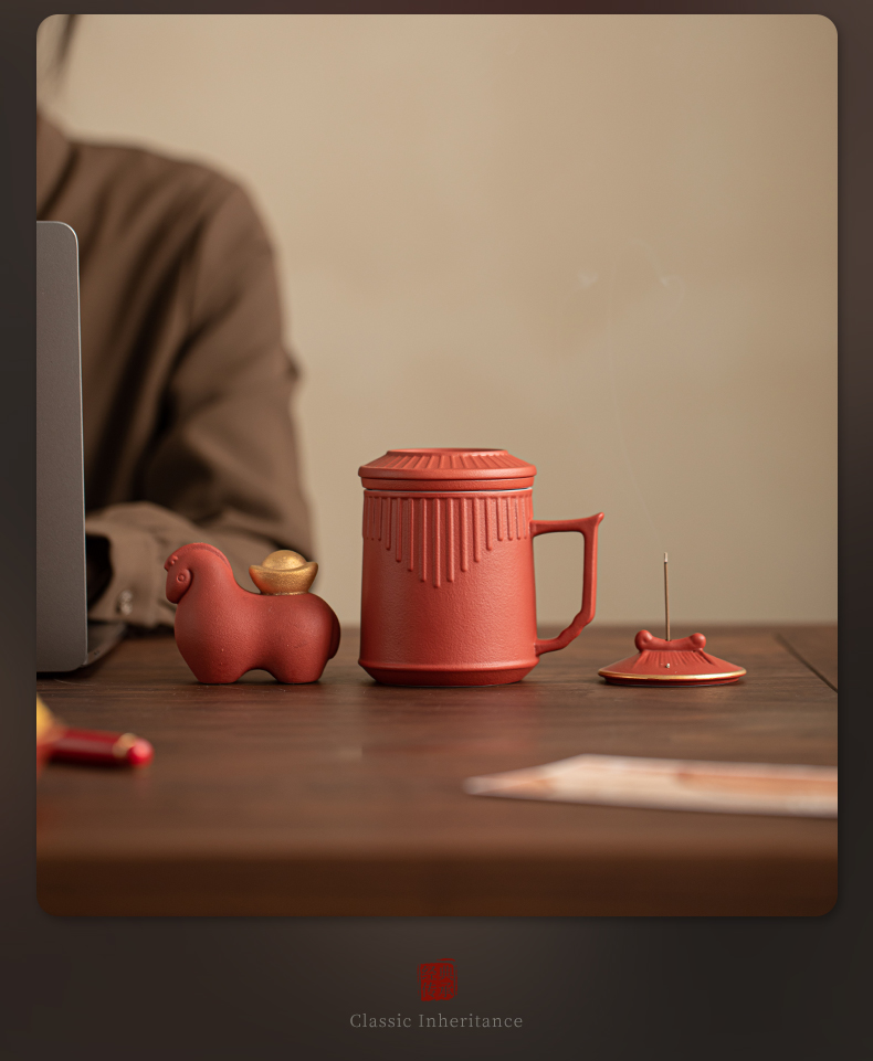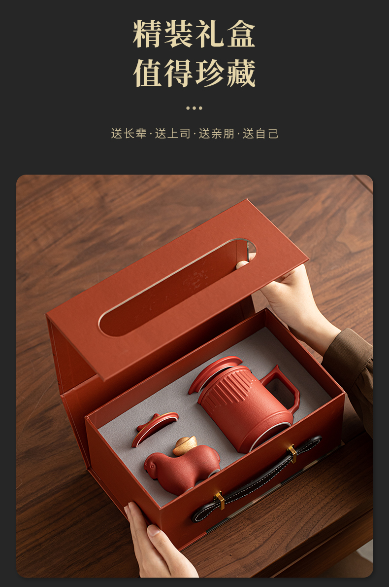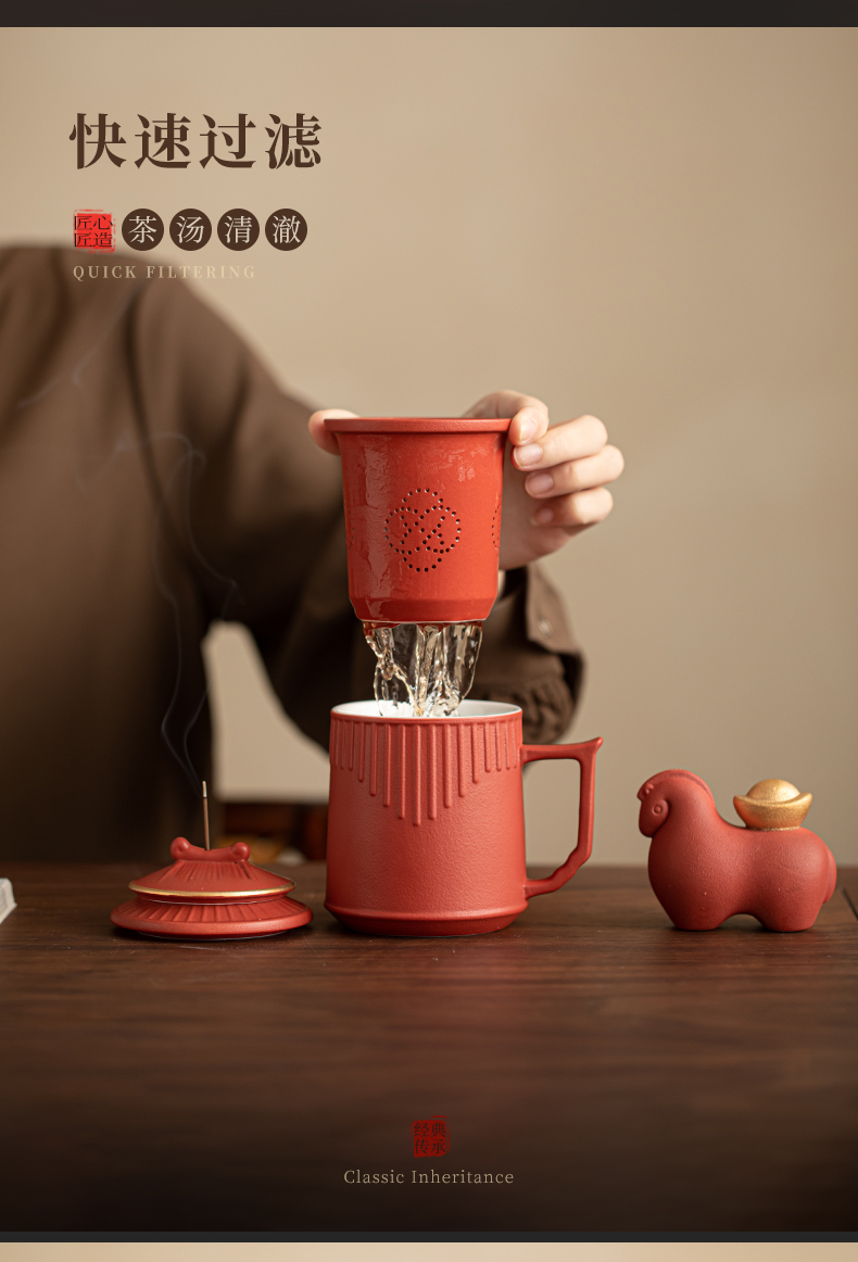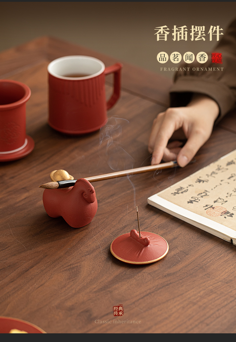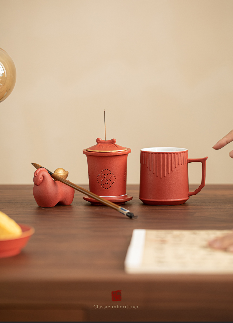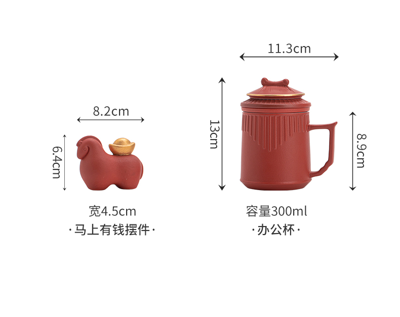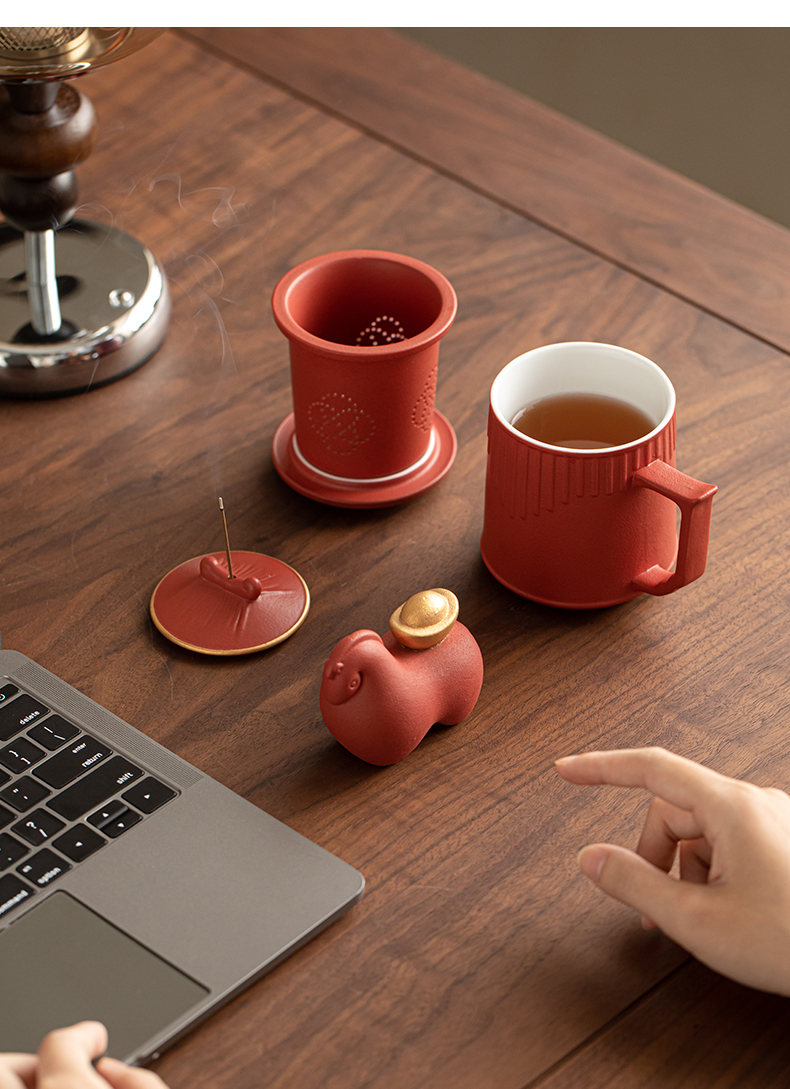 苏氏陶瓷(SUSHI CERAMICS) 办公杯马上有钱茶宠组 J1283 办公杯茶宠2头 红色(单位:套)