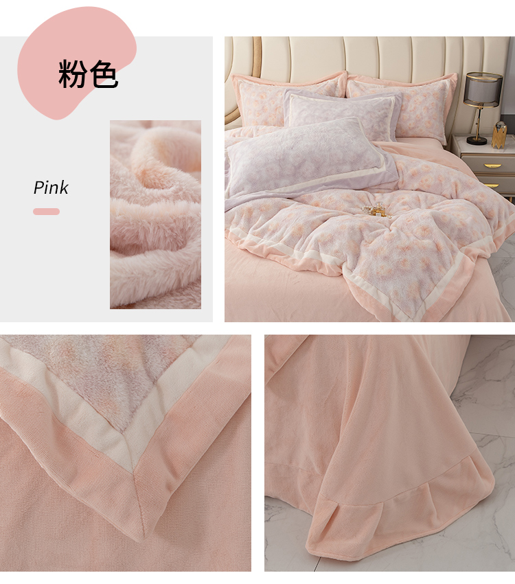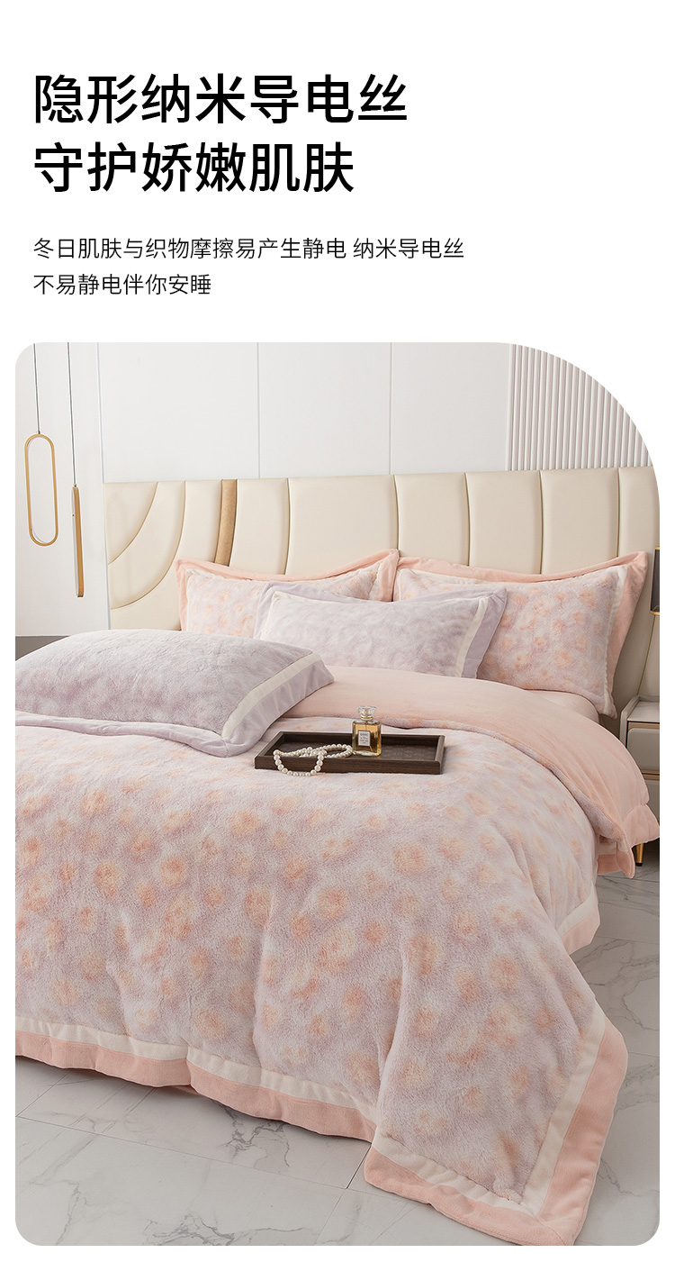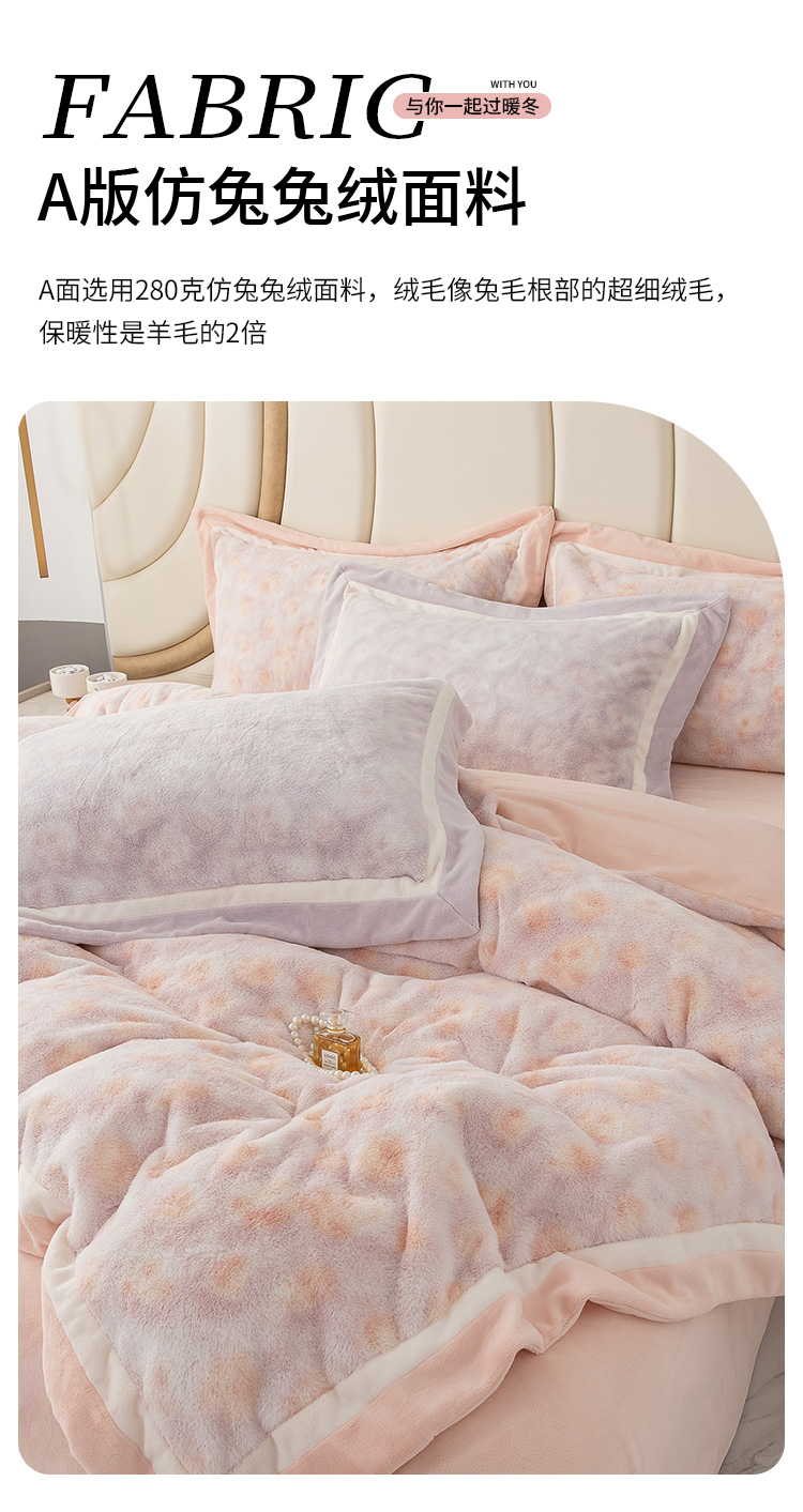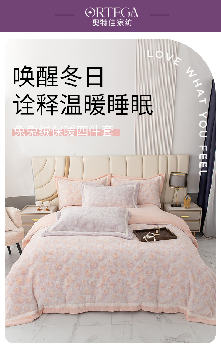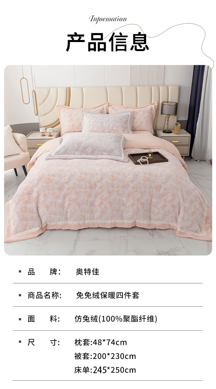 奥特佳 兔兔绒保暖四件套 001-010040 200*230cm 粉色(单位:套)