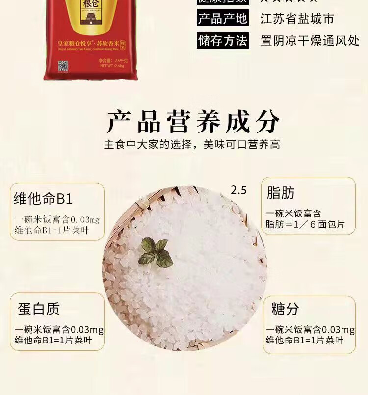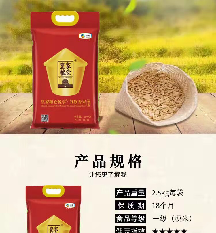 中粮皇家粮仓悦享苏软香米2.5kg单位:袋 红色
