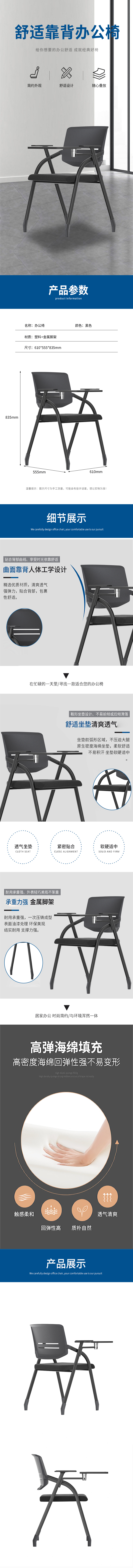 企诺 折叠会议椅固定脚+写字板 QE011 610*555*835mm 黑色(单位:张)