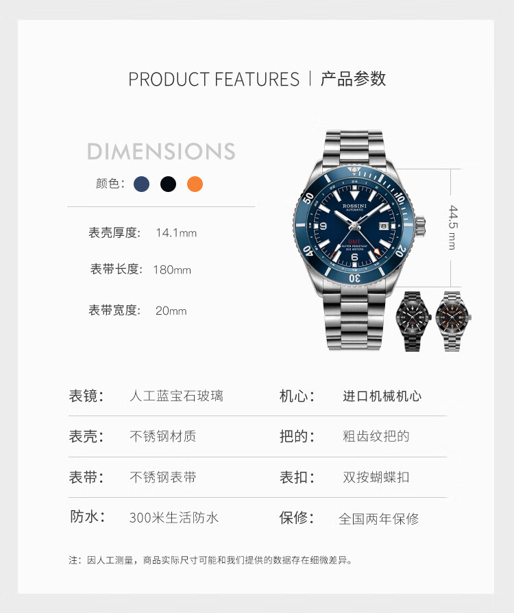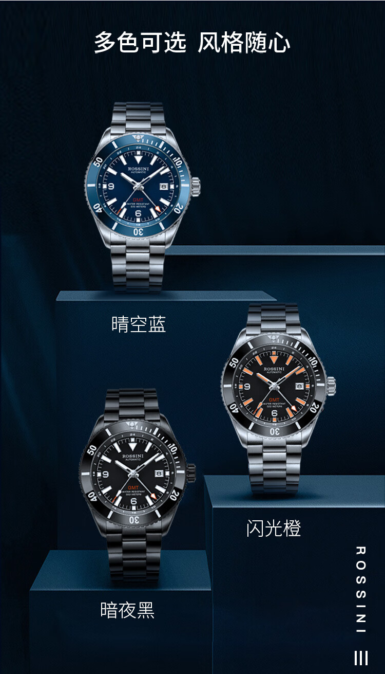 Rossini罗西尼 航海家系列 机械手表闪光橙时尚运动男表50157T04A(赠表带)单位1块 黑色