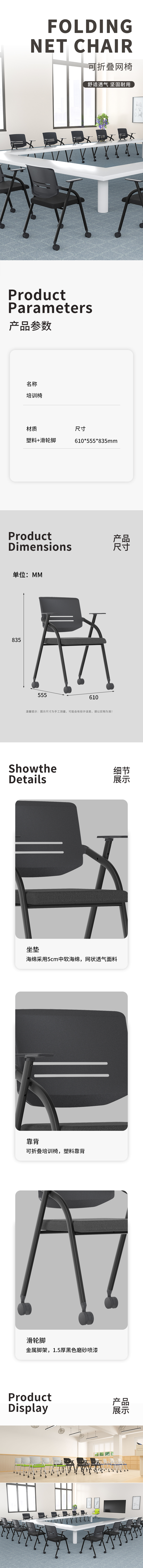 企诺 折叠会议椅滑轮脚 QE012 610*555*835mm 黑色(单位:张)